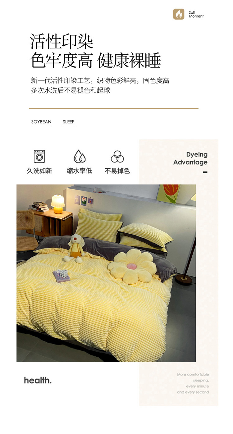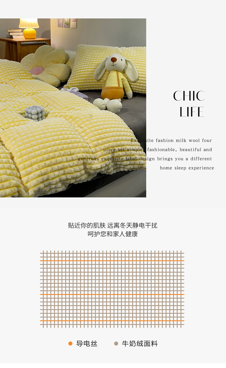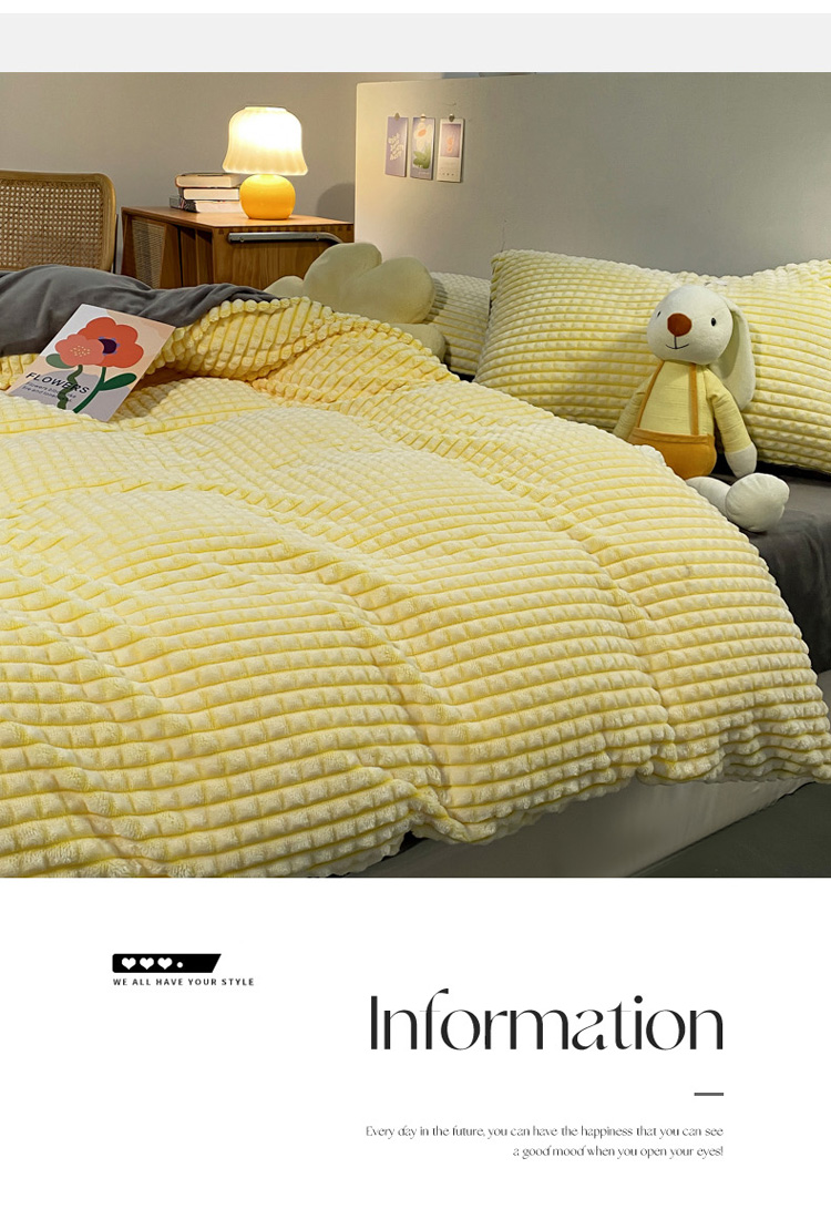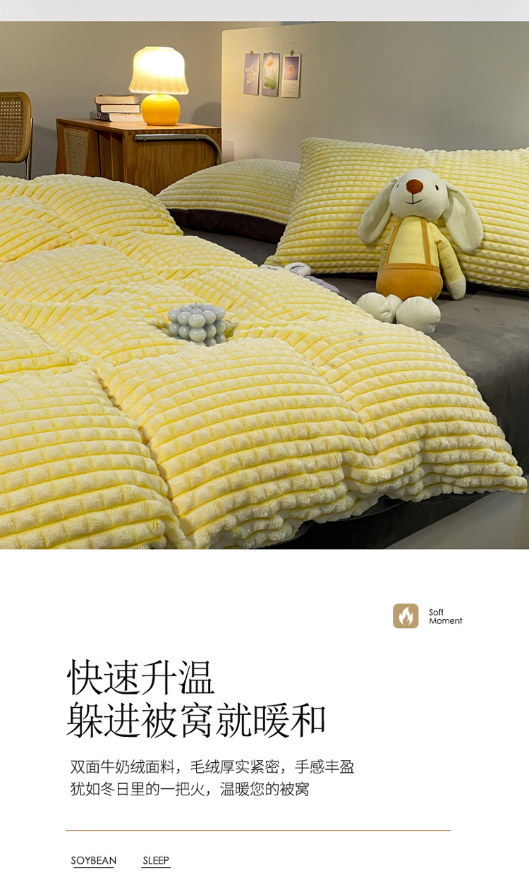 当前位置: 91家纺网 > 商品网购 > 床品套件 > 四件套 > 牛奶绒四件套 > 慕澄 2024新款牛奶绒剪花简约款四件套 简约-黄
