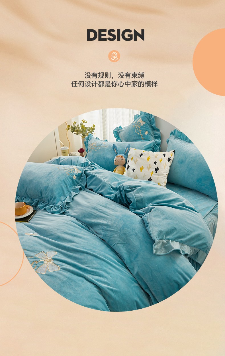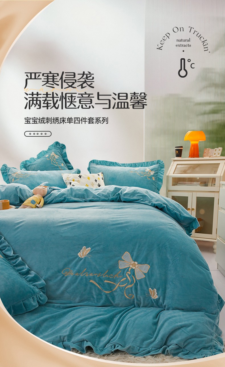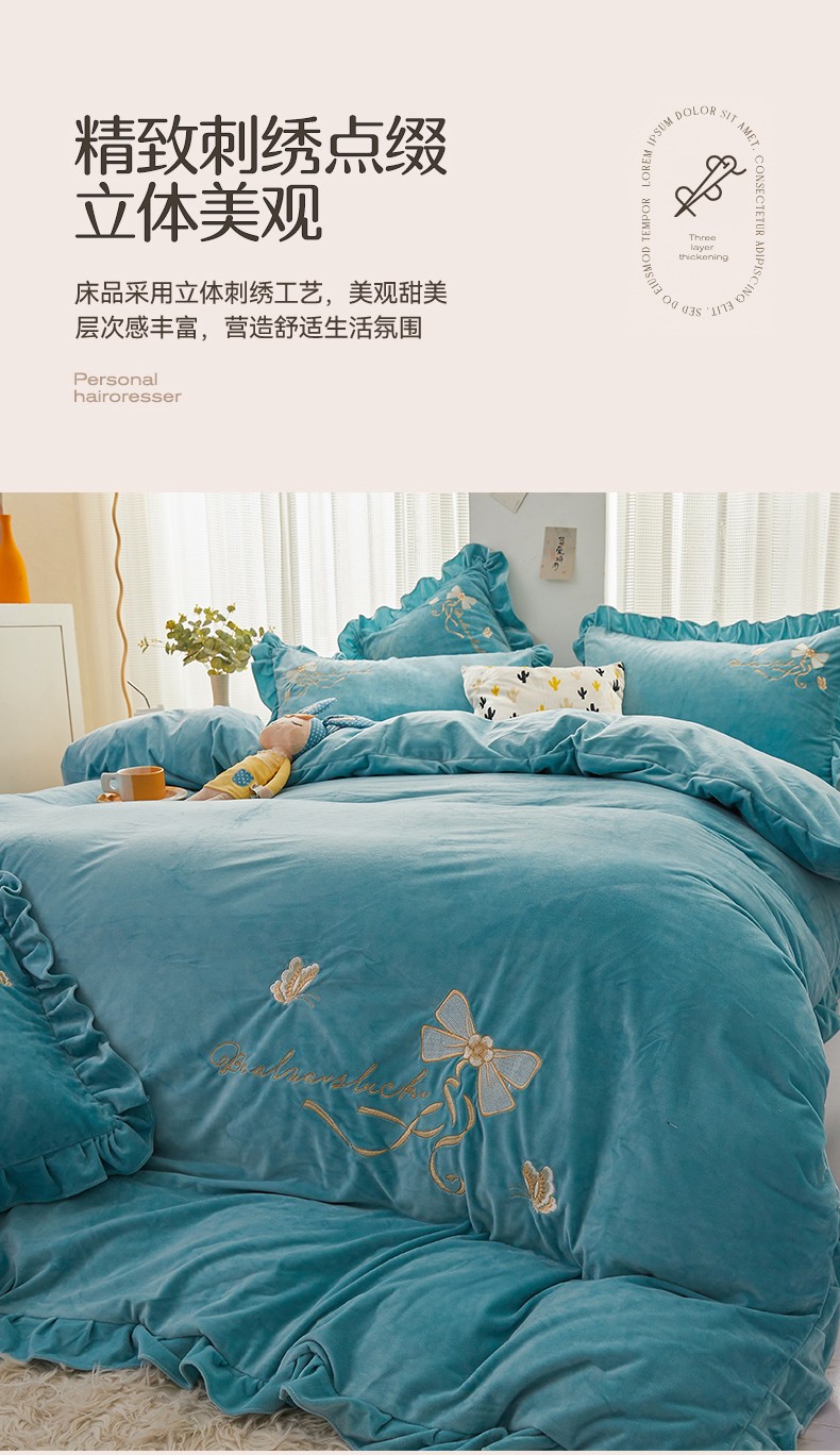 (总)恒爱 2022新款秋冬轻奢宝宝绒刺绣床裙款四件套,爱玛橙,宾利蓝,豆沙红,橄榄绿,高级灰,酒红,梦想粉,浅灰蓝,温馨粉,喜庆红,香妃粉,香芋紫