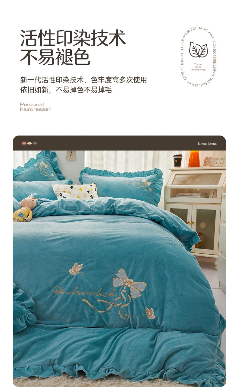 (总)恒爱 2022秋冬水晶绒翩翩花舞夹棉床裙四件套,大红色,豆沙红,橄榄绿,公主粉,桔色,咖啡色,孔雀绿,拉菲红,罗兰紫,玫红色,美人玉,米白色,米驼色,抹茶绿,浅灰色,紫色