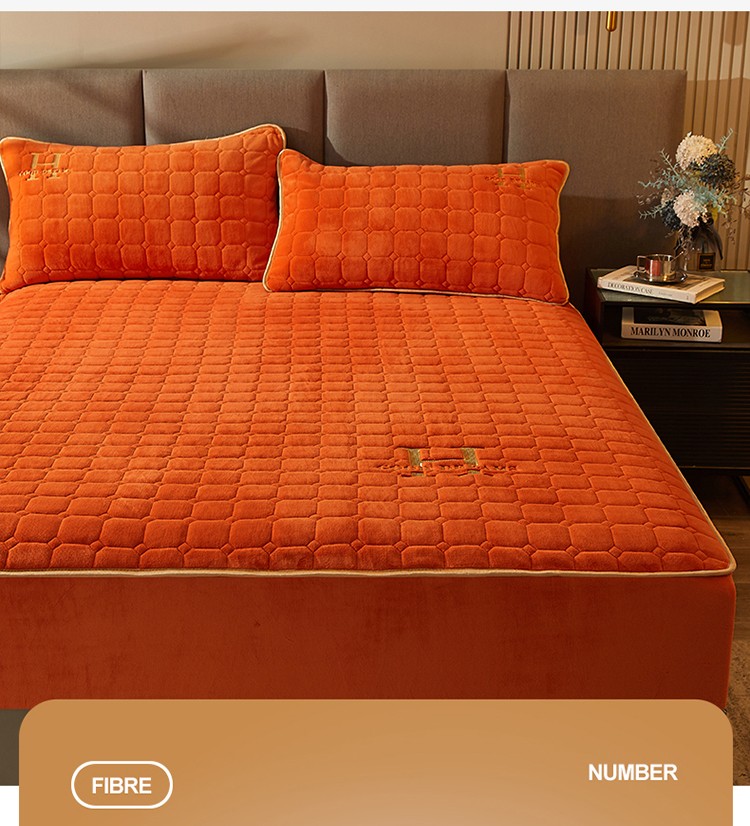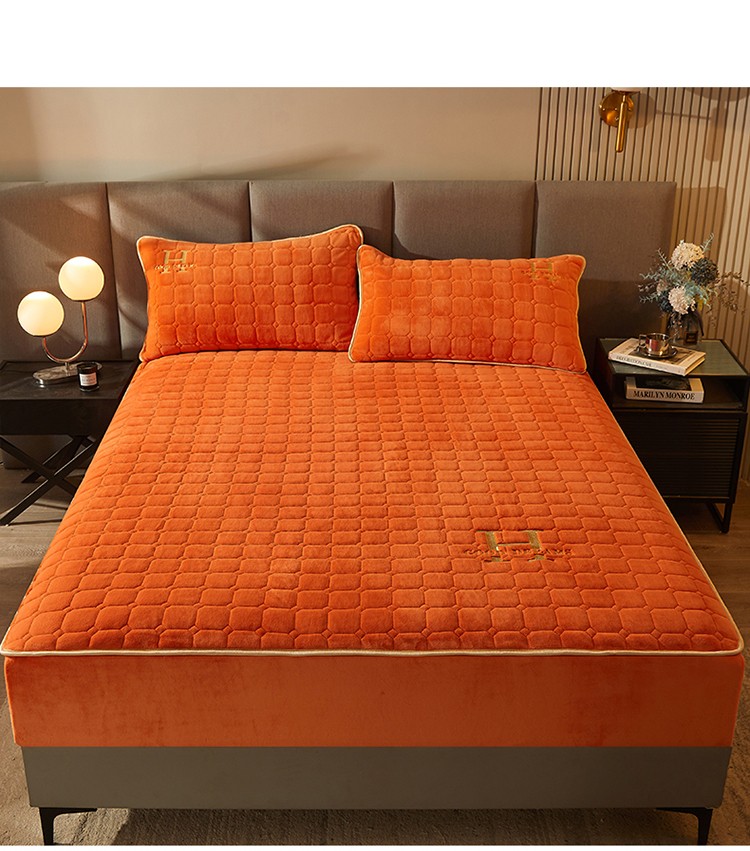 恒爱2022秋冬新款A类牛奶绒刺绣夹棉单床笠--H系列格调橙