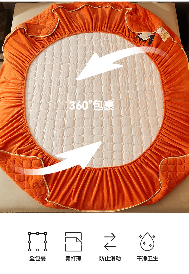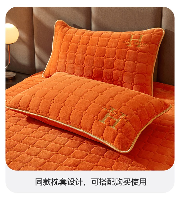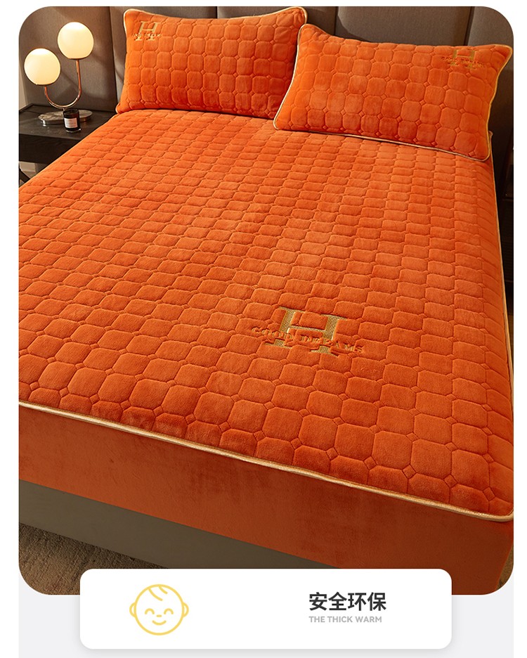 商品名称:恒爱2022秋冬新款A类牛奶绒刺绣夹棉单床笠--H系列格调橙