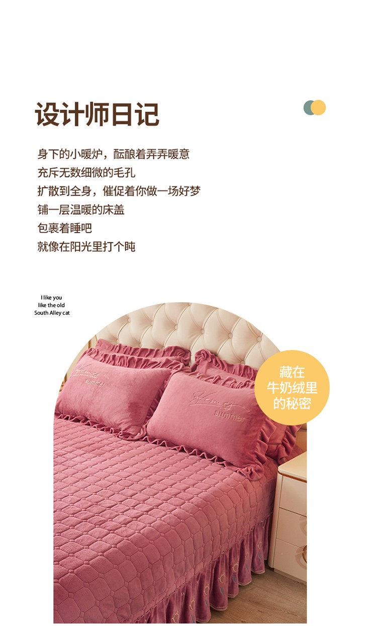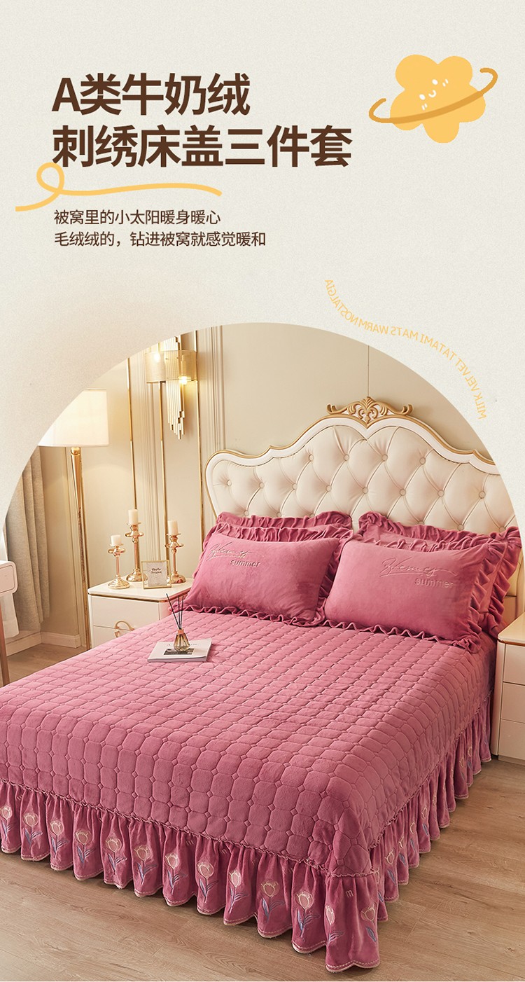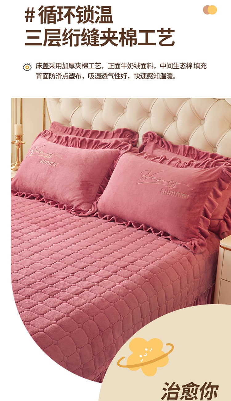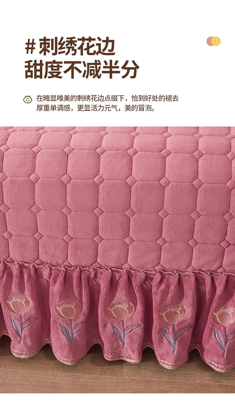 (总)恒爱家纺 2025新款牛奶绒贴布绣夹棉床裙四件套,豆沙红,浪漫紫,天空蓝,温馨粉,象牙白