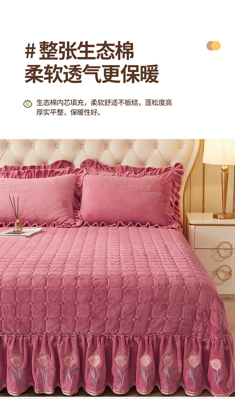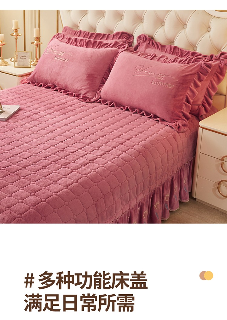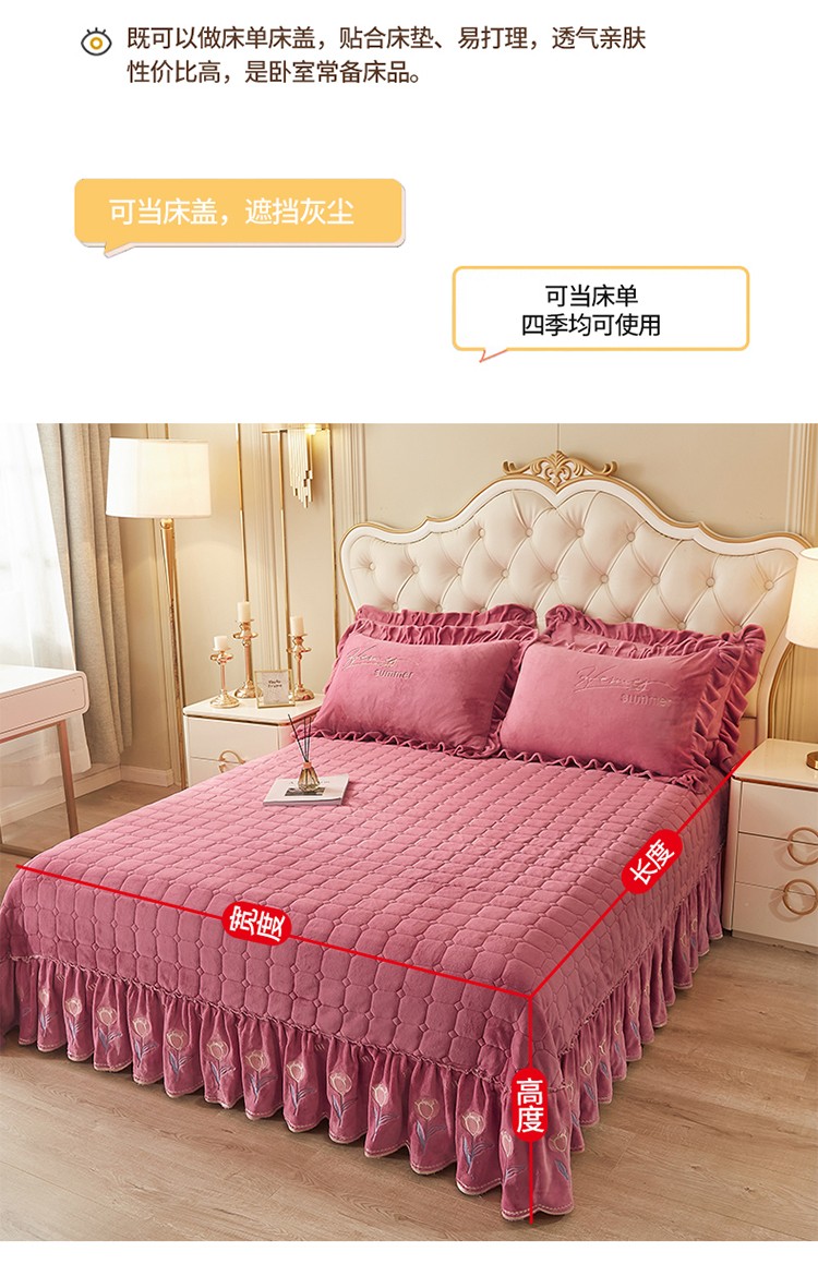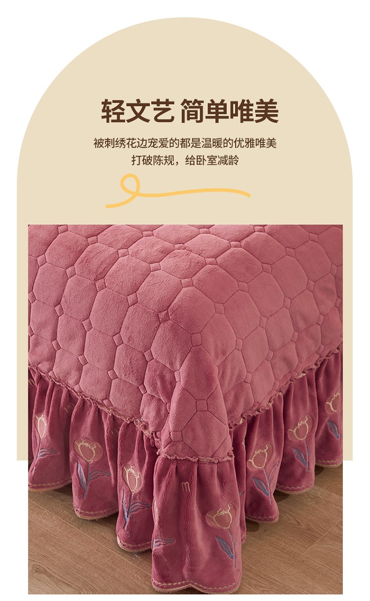 (总)恒爱 2022秋冬水晶绒翩翩花舞夹棉单床裙,大红色,豆沙红,橄榄绿,公主粉,桔色,咖啡色,孔雀绿,拉菲红,罗兰紫,玫红色,美人玉,米白色,米驼色,抹茶绿,浅灰色,紫色