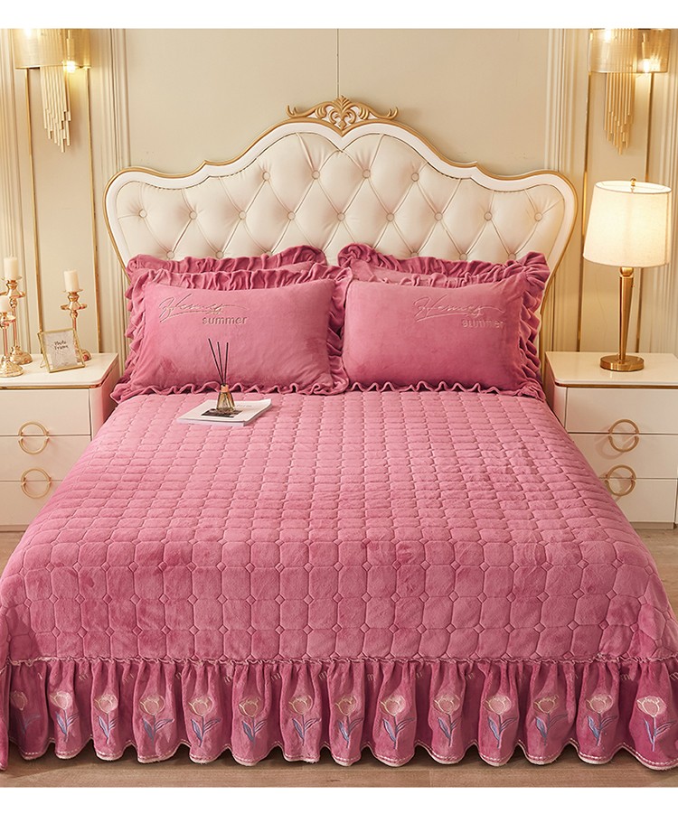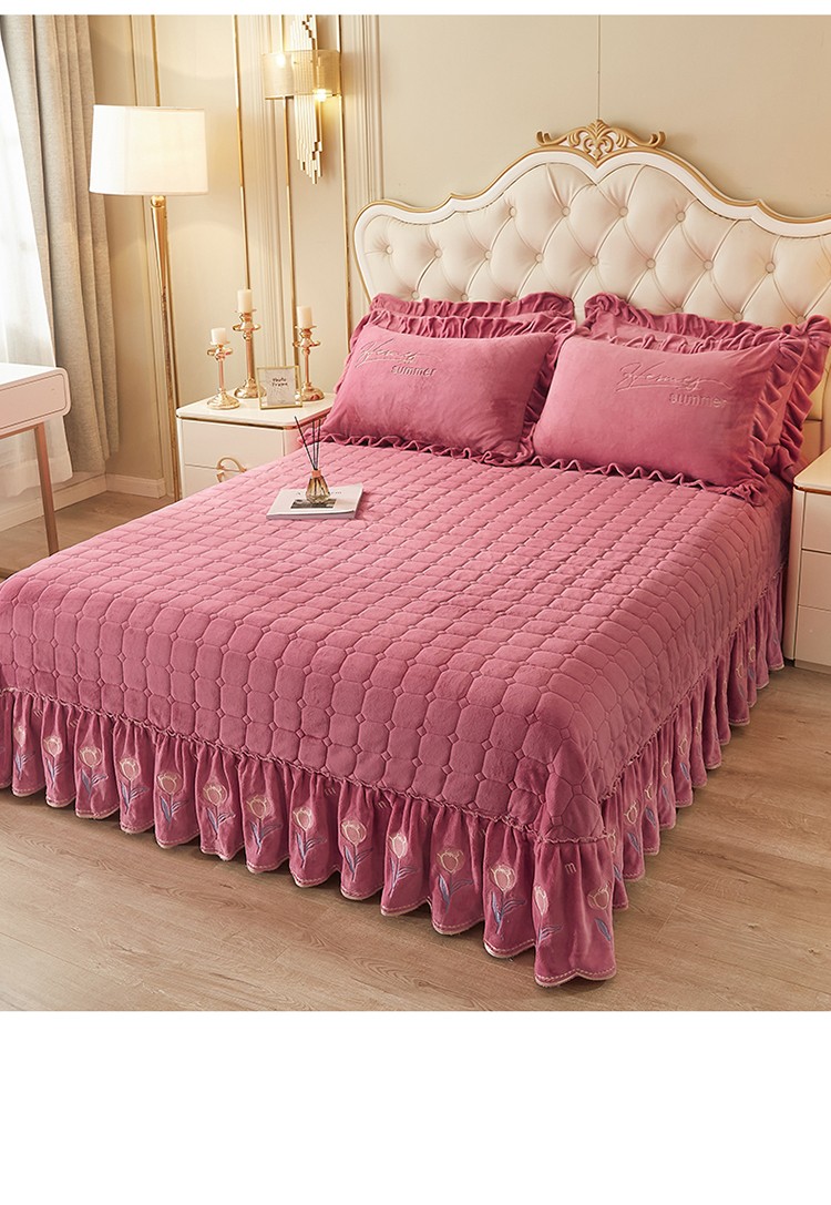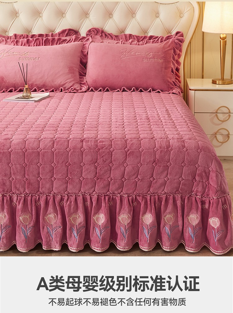 (总)恒爱 2022秋冬水晶绒翩翩花舞夹棉床裙四件套,大红色,豆沙红,橄榄绿,公主粉,桔色,咖啡色,孔雀绿,拉菲红,罗兰紫,玫红色,美人玉,米白色,米驼色,抹茶绿,浅灰色,紫色