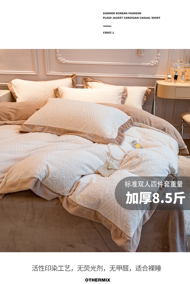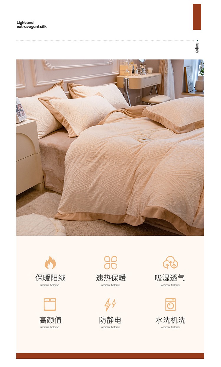 (总)丝幔家纺 2025新款A类暖绒提花雕花绒保暖四件套,爱马橙,火龙果红,克莱因蓝,梦幻灰,奶茶咖,奶咖,奶昔白,苔绿,星空灰,雅典粉