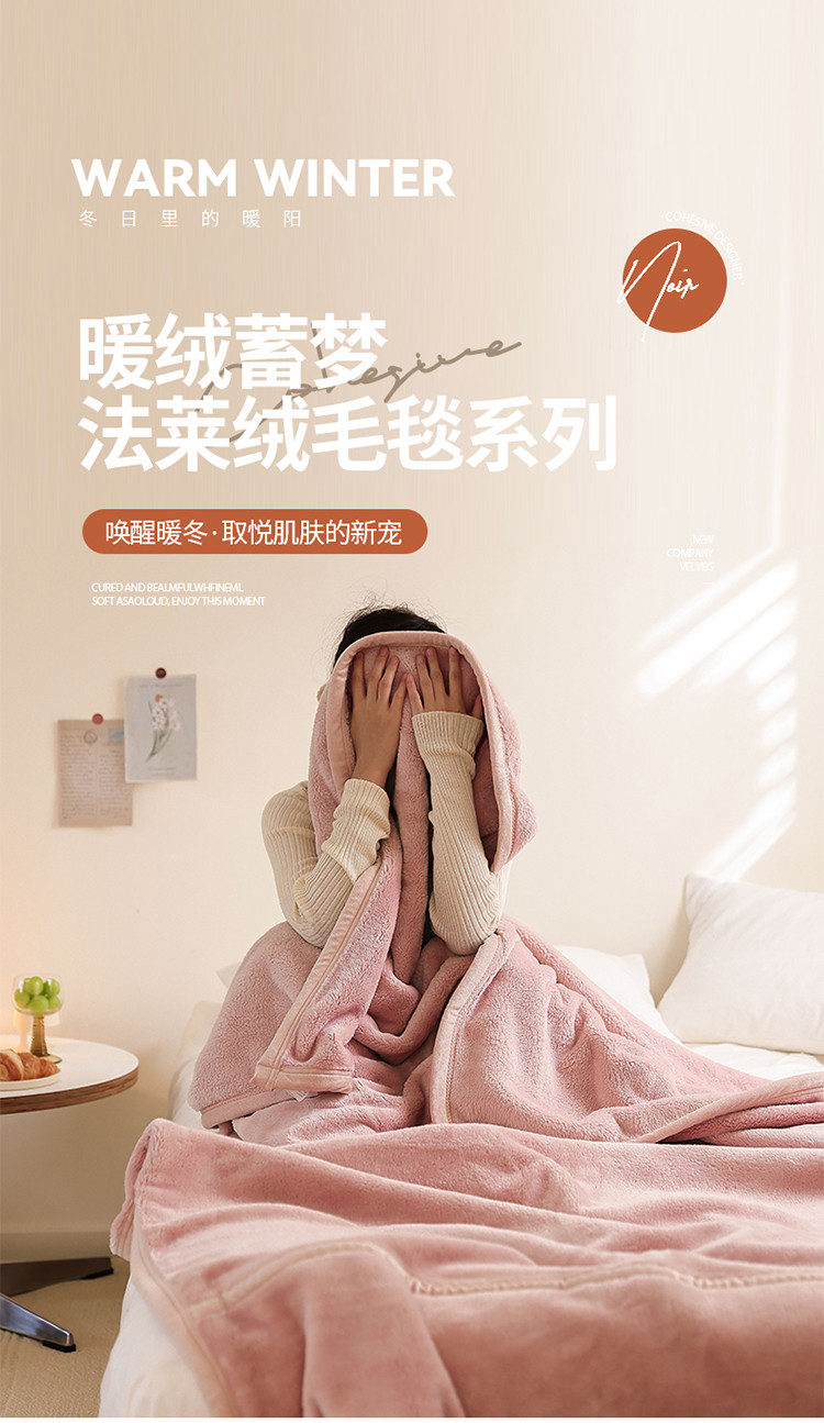 商品名称:寐眠 2022新款法莱绒毛毯 浅粉