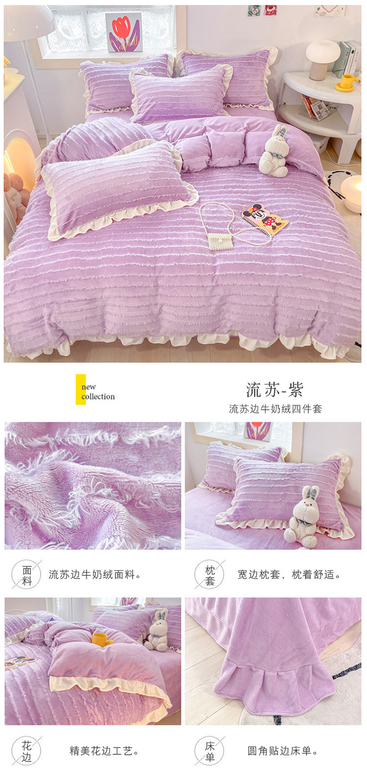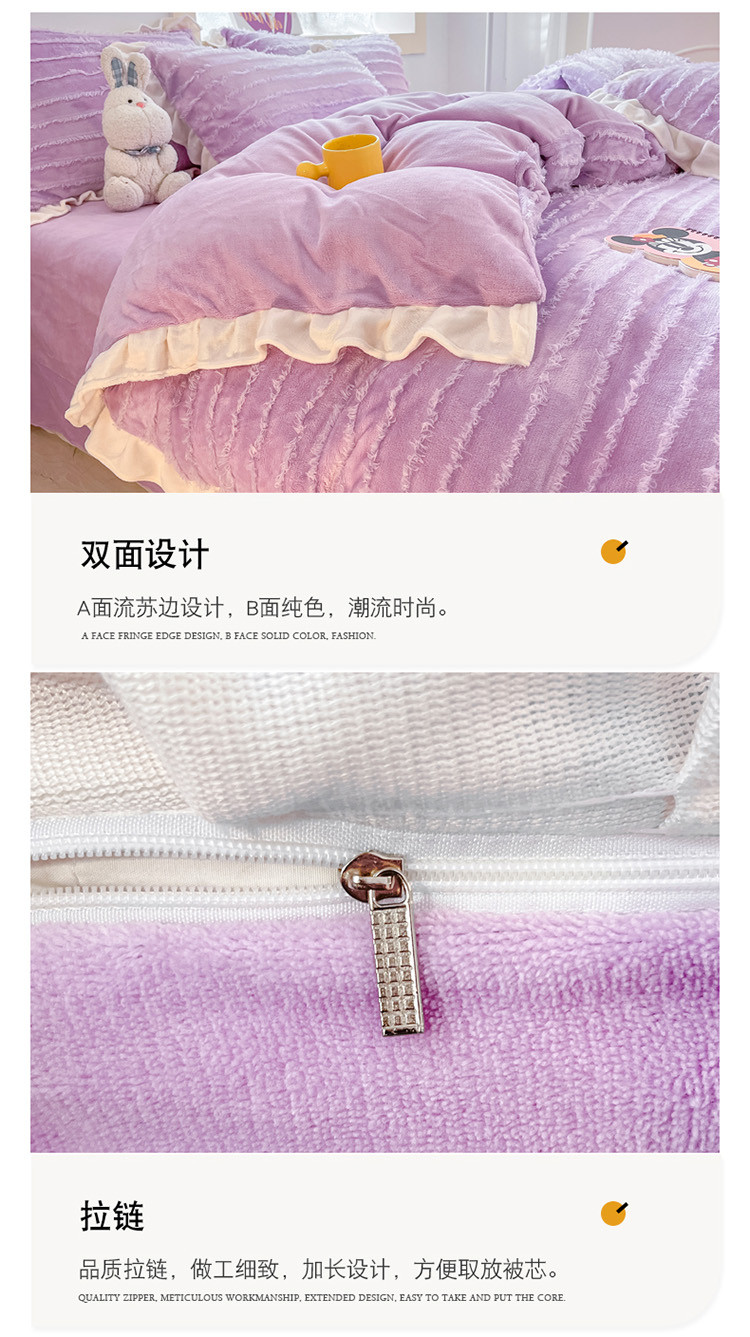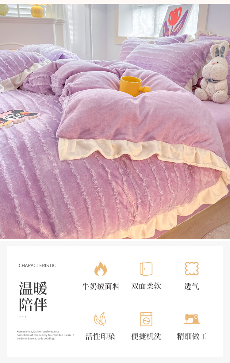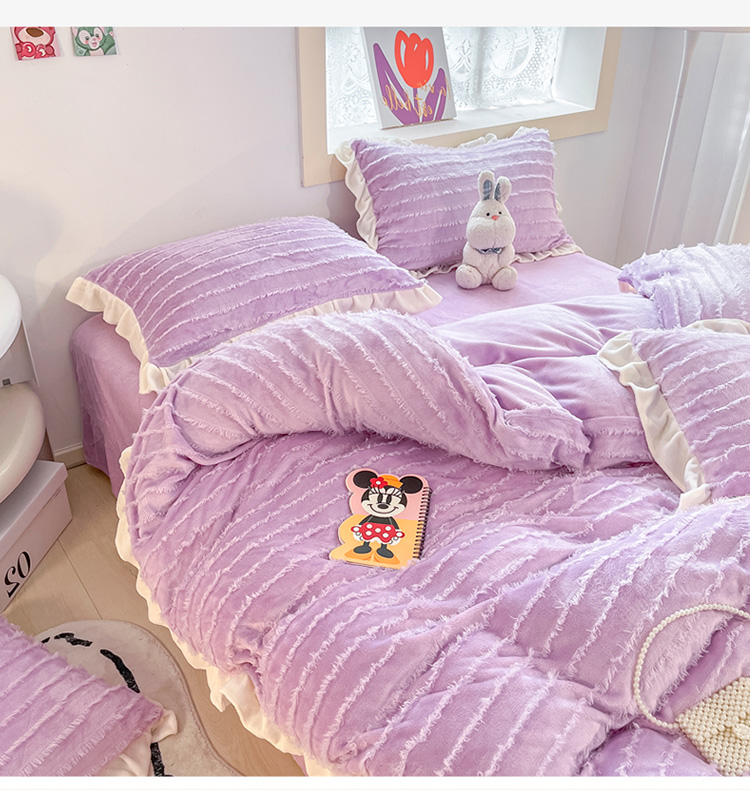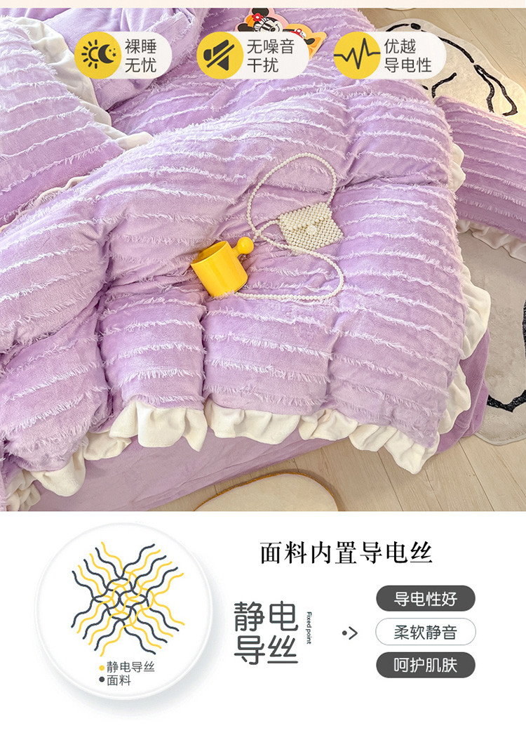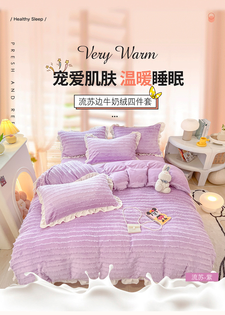 金爱家 2023新款流苏牛奶绒四件套 流苏-紫