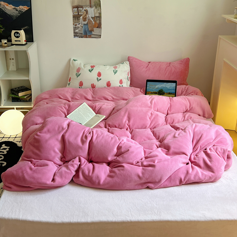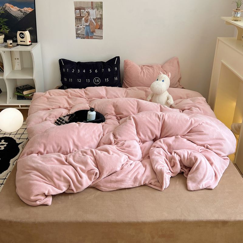 (总)桃喜 2024新款牛奶绒纯色混搭系列四件套