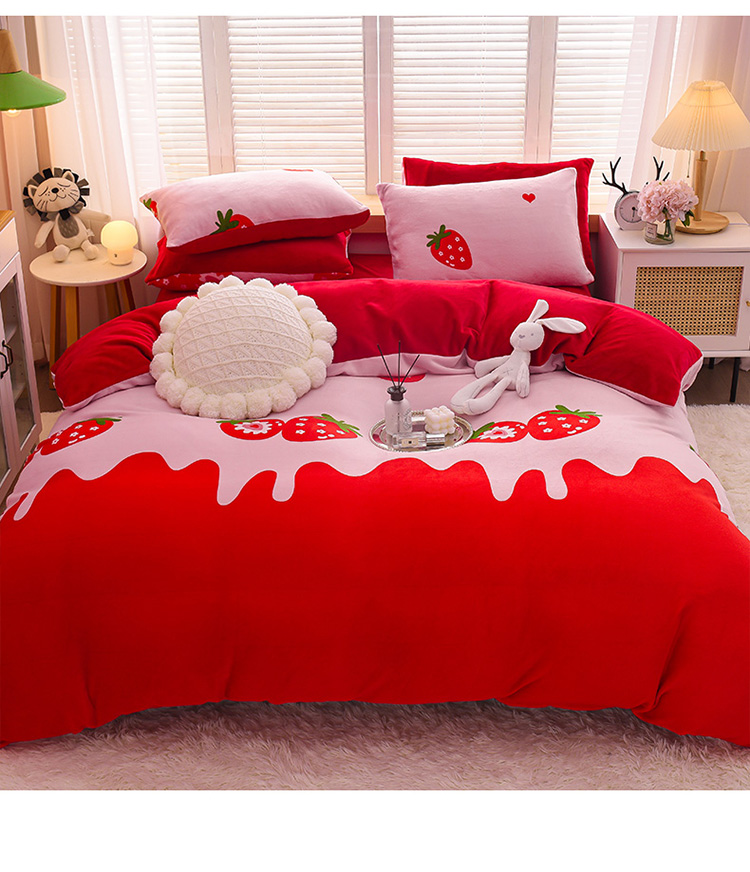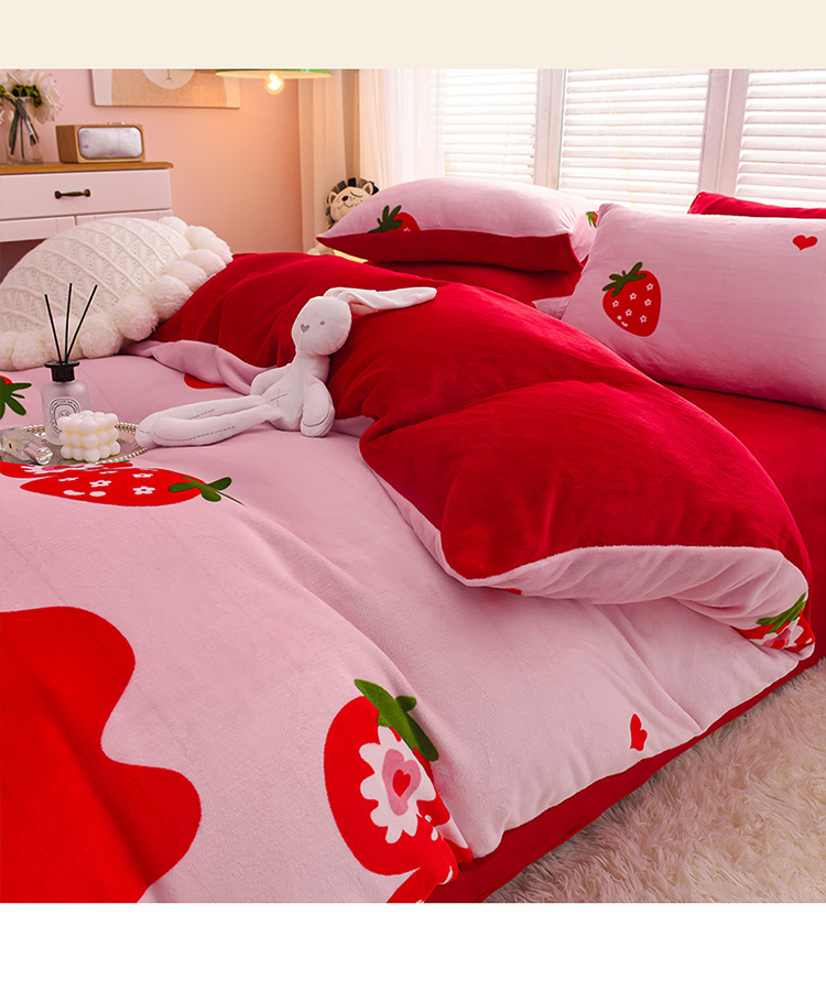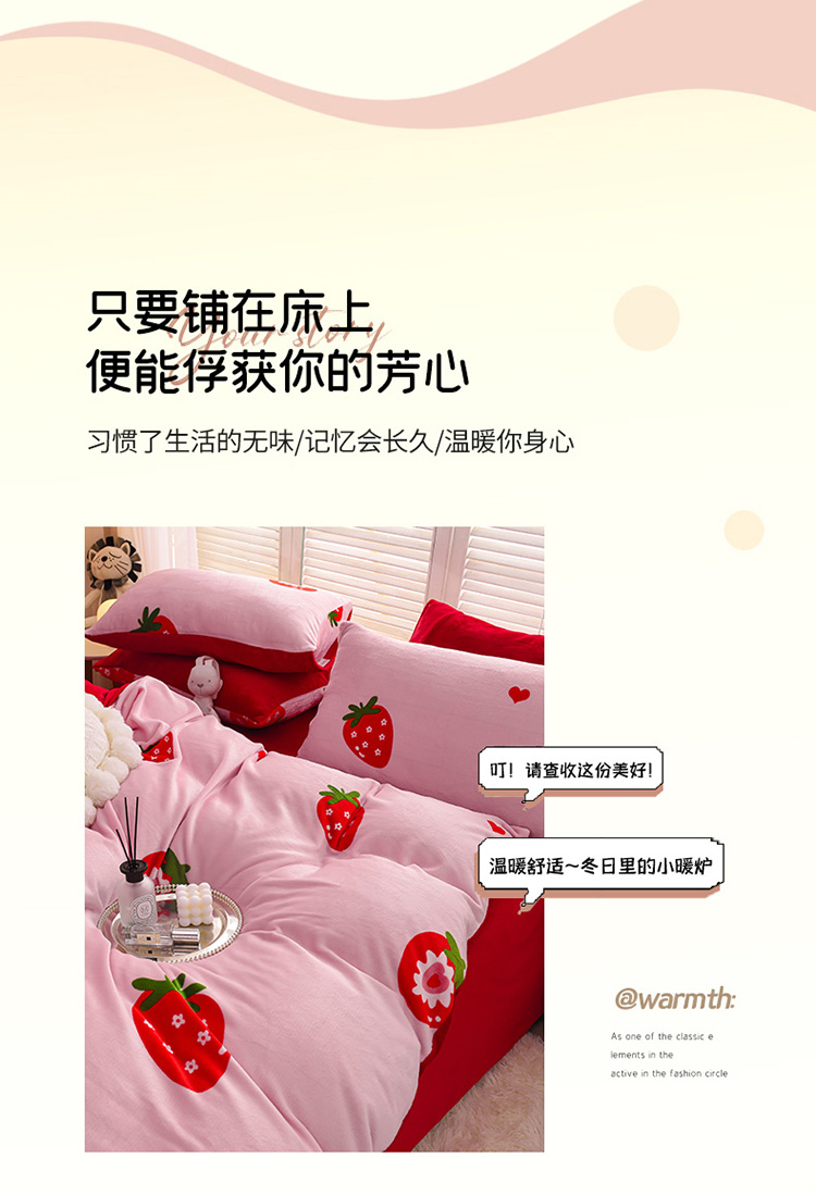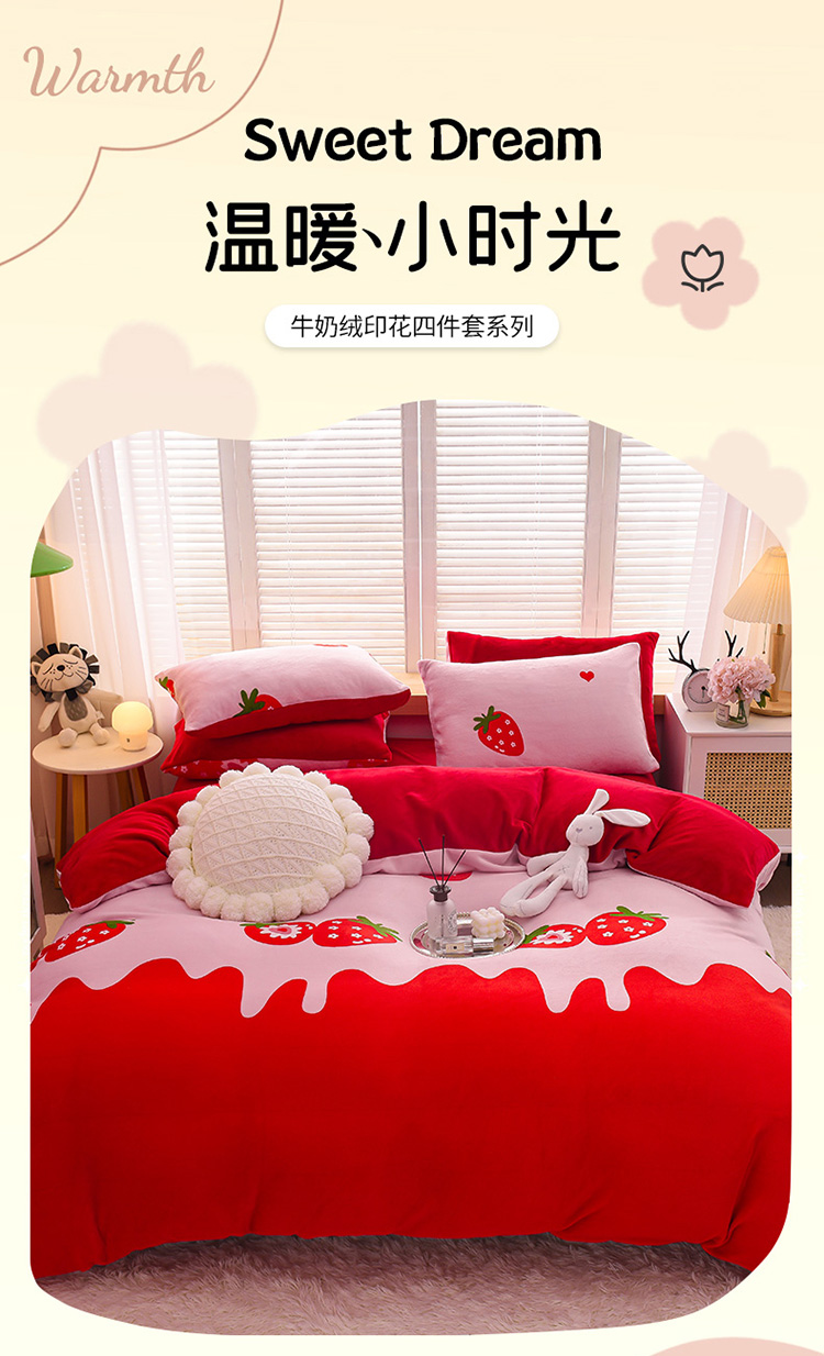 芃成 2022新款加厚双面牛奶绒印花床品系列-四件套 草莓之恋