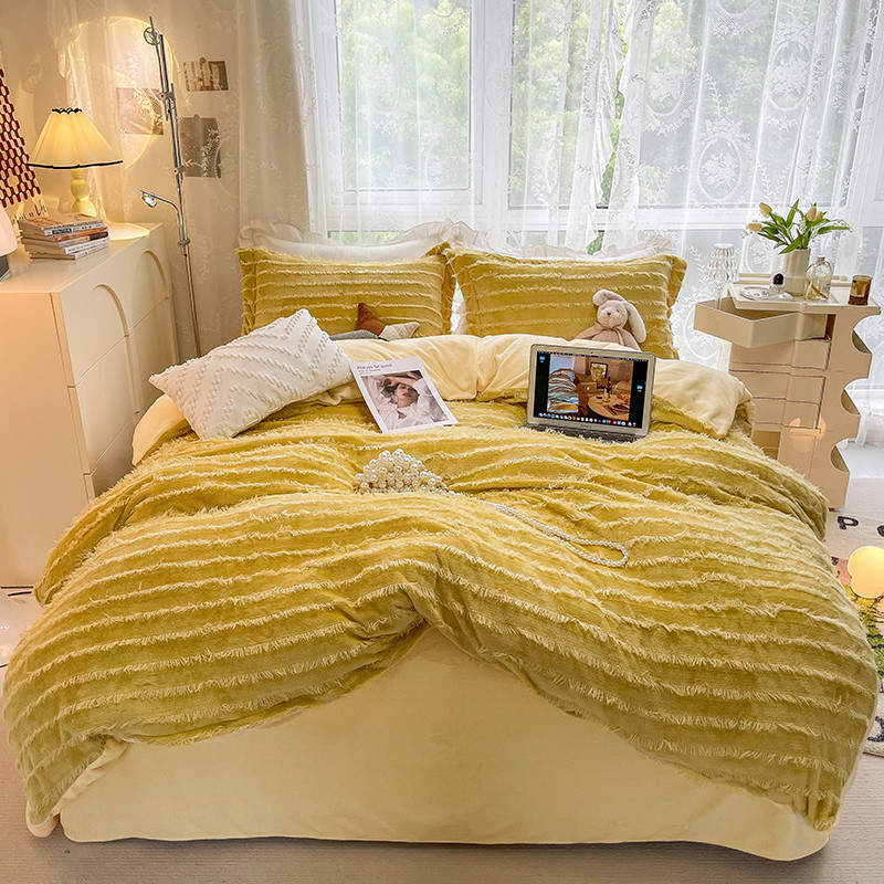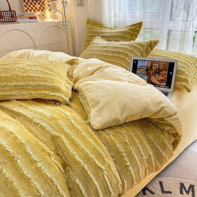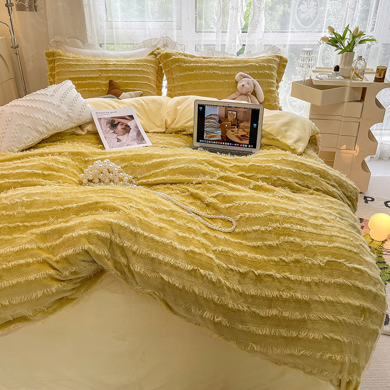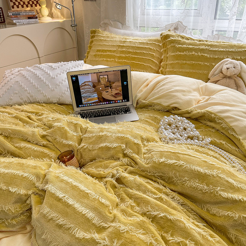 HL原创 2022新款流苏牛奶绒四件套 黄