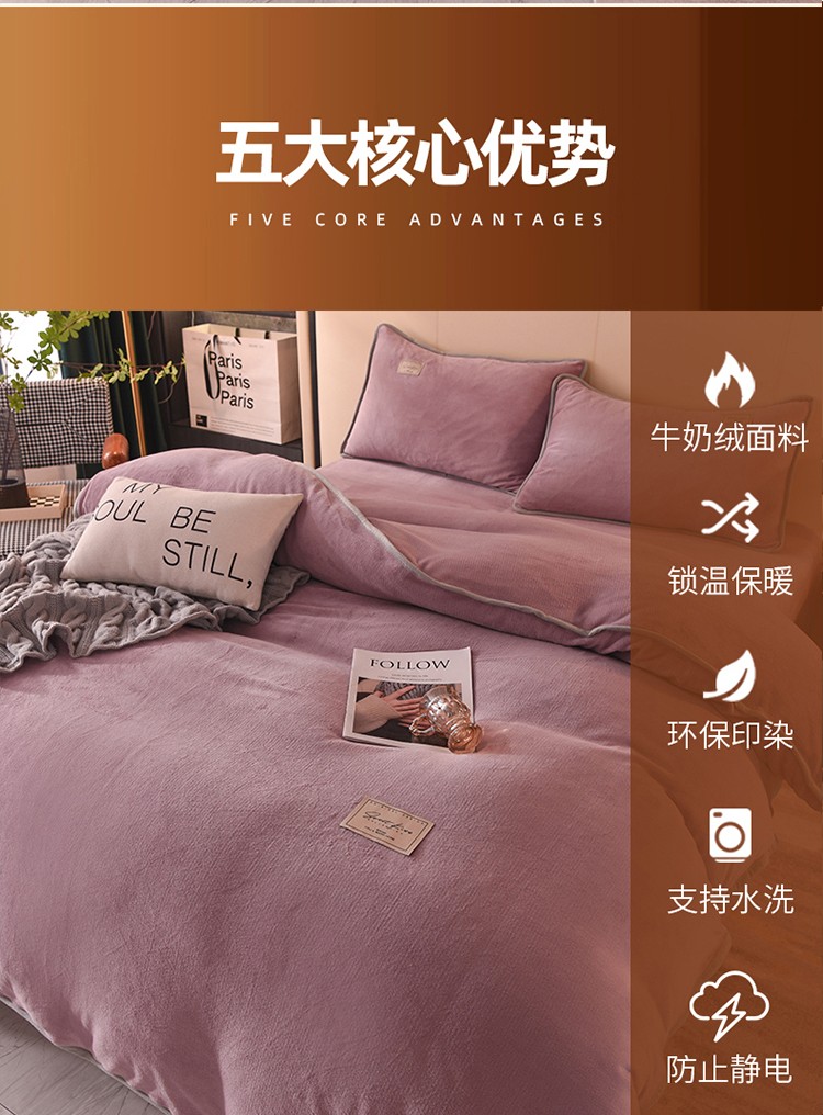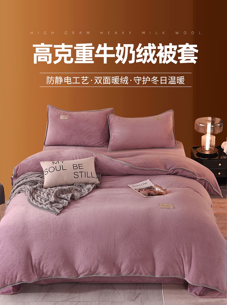 • 91家纺网 家纺一手货源 找家纺 518 2025新款220克牛奶绒纯色系列被套可定制 罗兰紫