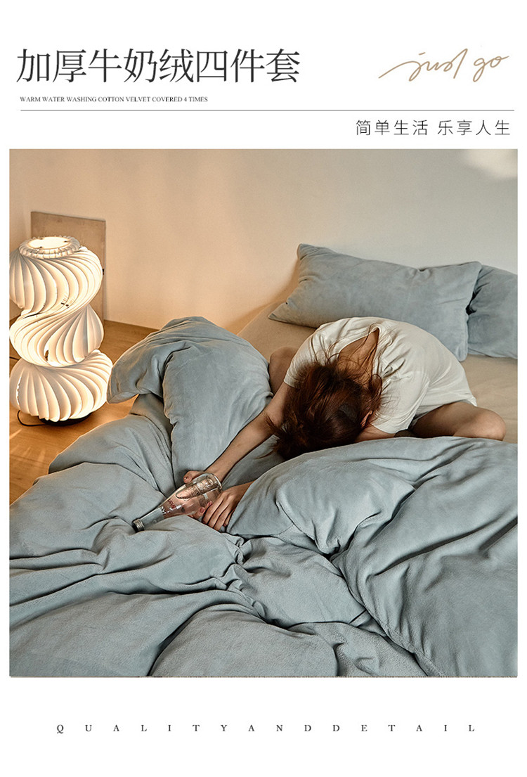 当前位置: 91家纺网 > 商品网购 > 床品套件 > 四件套 > 牛奶绒四件套 > 新款加厚牛奶绒四件套 淡蓝灰