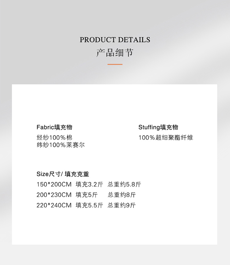 商品名称:云栖家居 2022A类80支棉天丝舒柔冬被 灰色