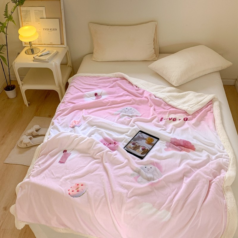 商品名称:桃喜 2022新款数码印花牛奶绒羊羔绒毛毯 玩偶兔