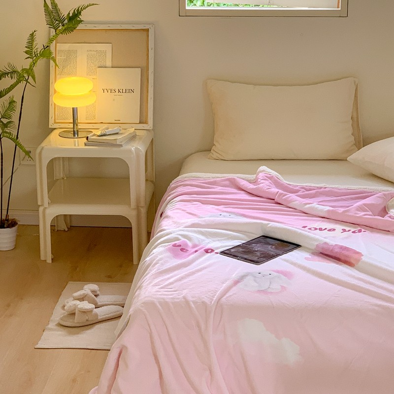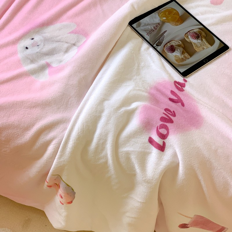 桃喜 2022新款数码印花牛奶绒羊羔绒毛毯 玩偶兔