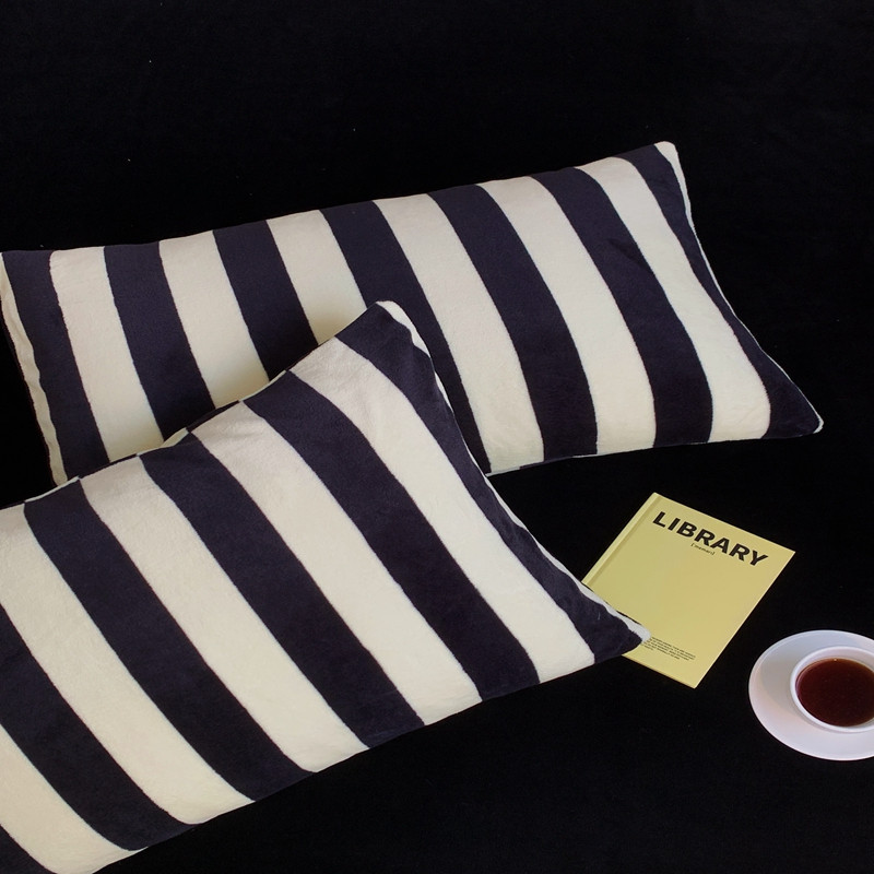 商品名称:桃喜 2022新款牛奶绒条纹枕套 经典黑白条