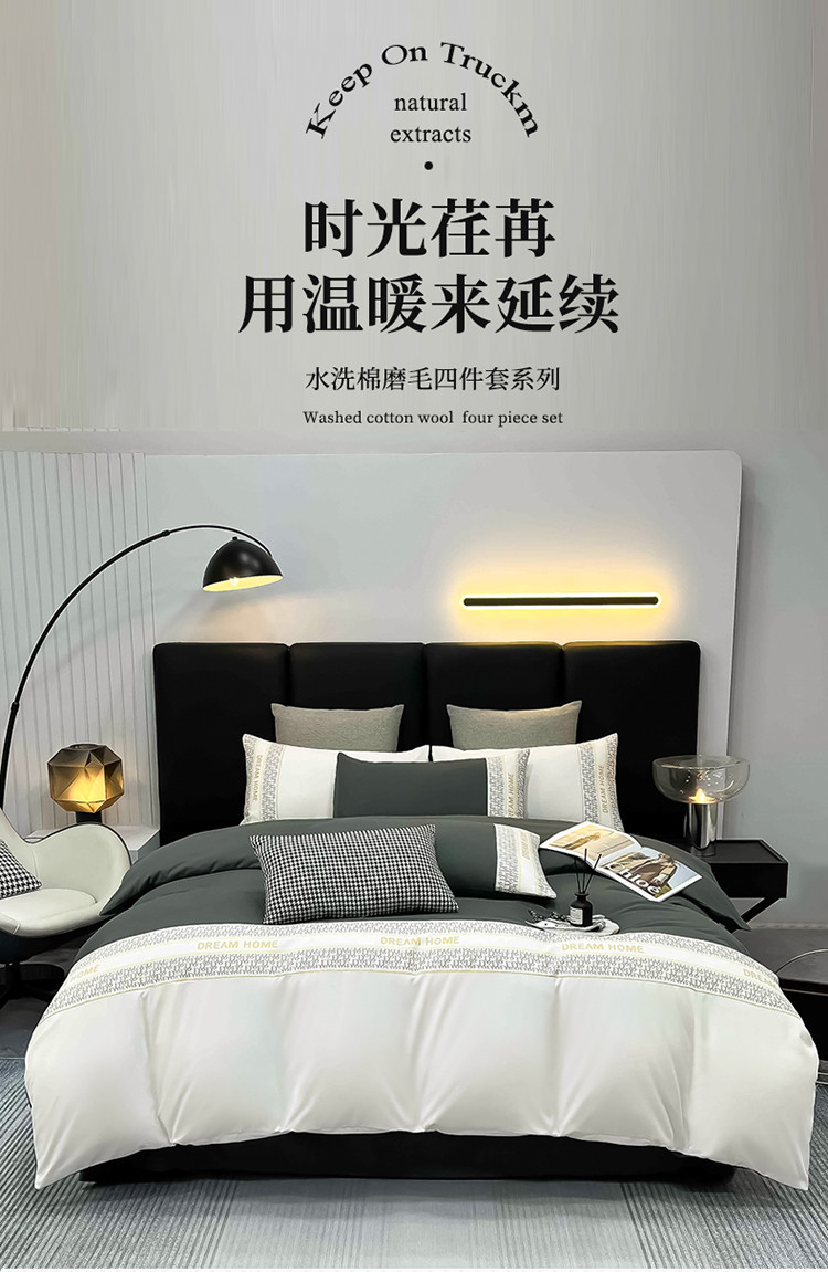 商品名称:(总)千希家纺家纺 2023新款格调D潮牌拼接磨毛四件套