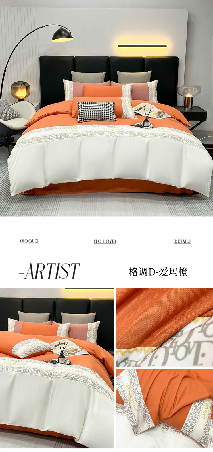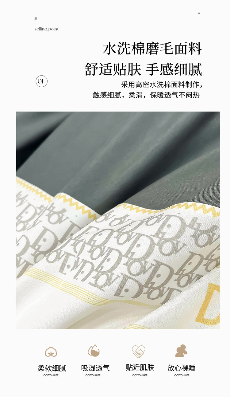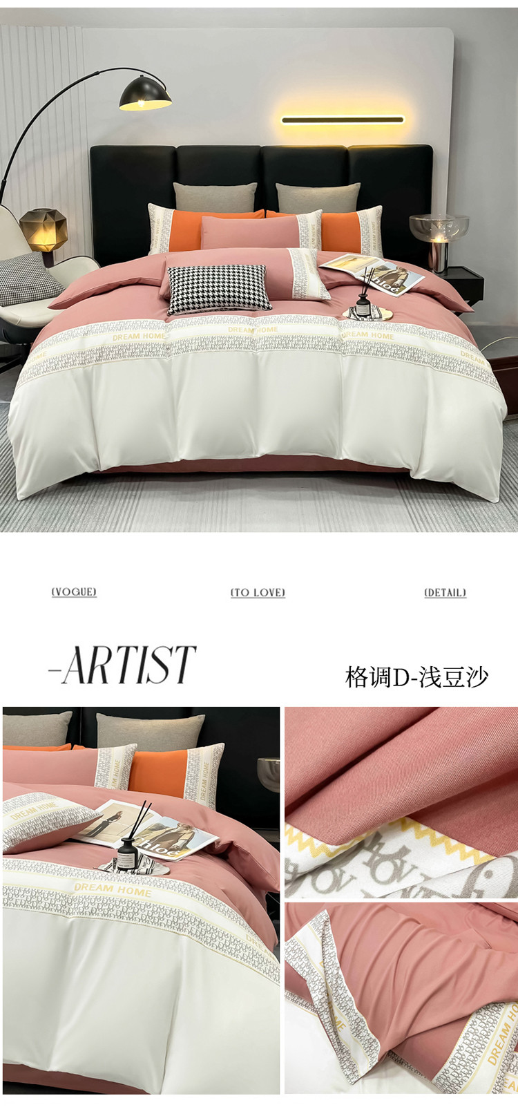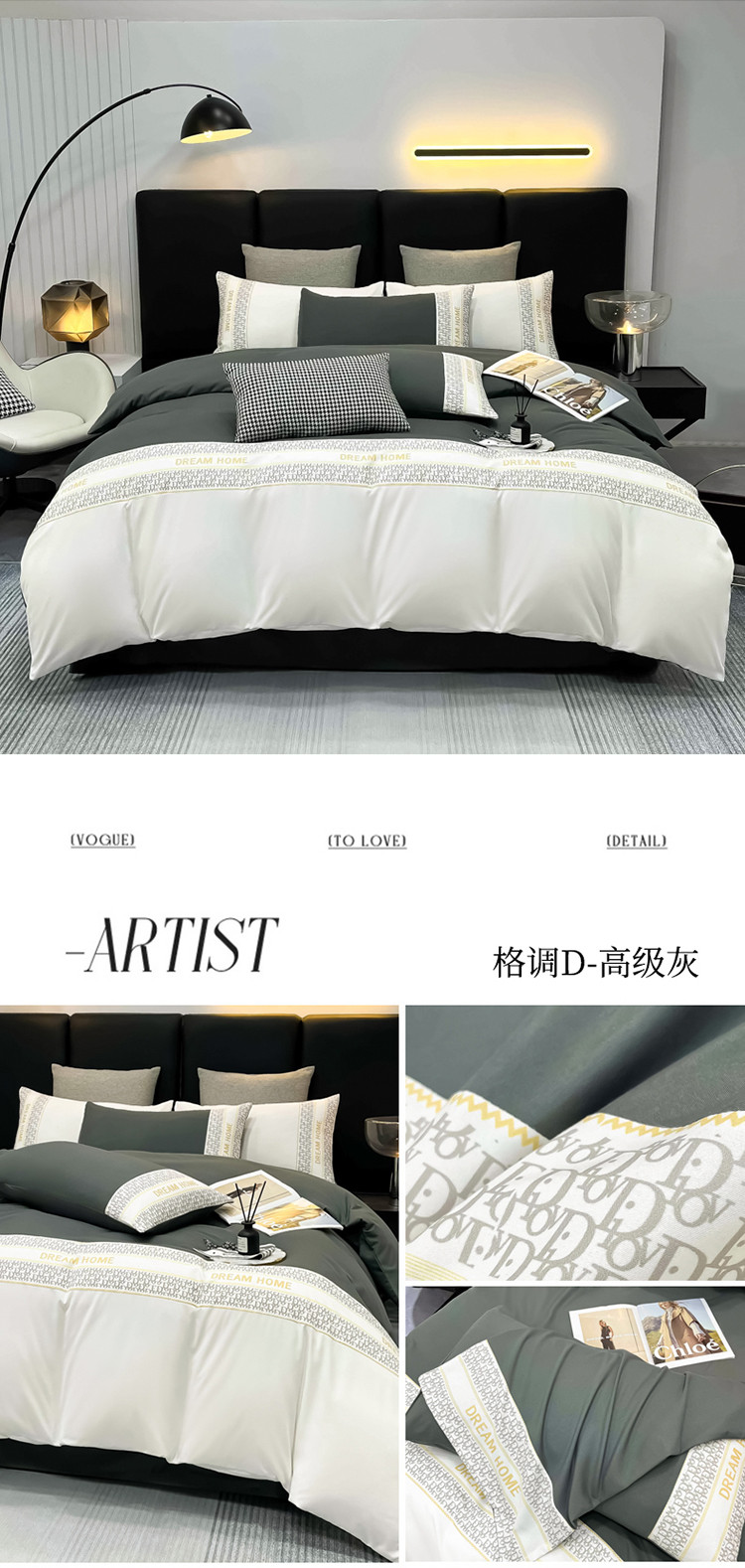 (总)千希家纺家纺 2023新款格调D潮牌拼接磨毛四件套