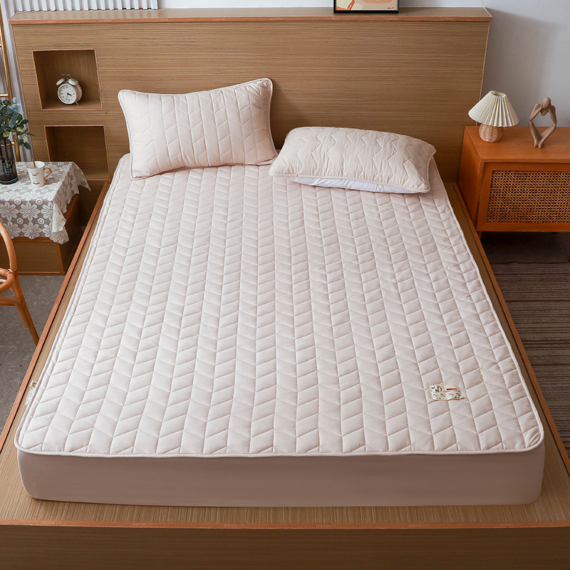 A类本色原棉夹棉床笠大豆纤维床笠款 人字纹-卡其
