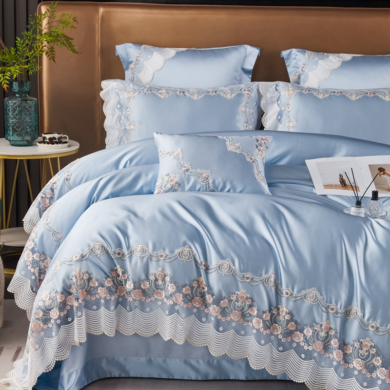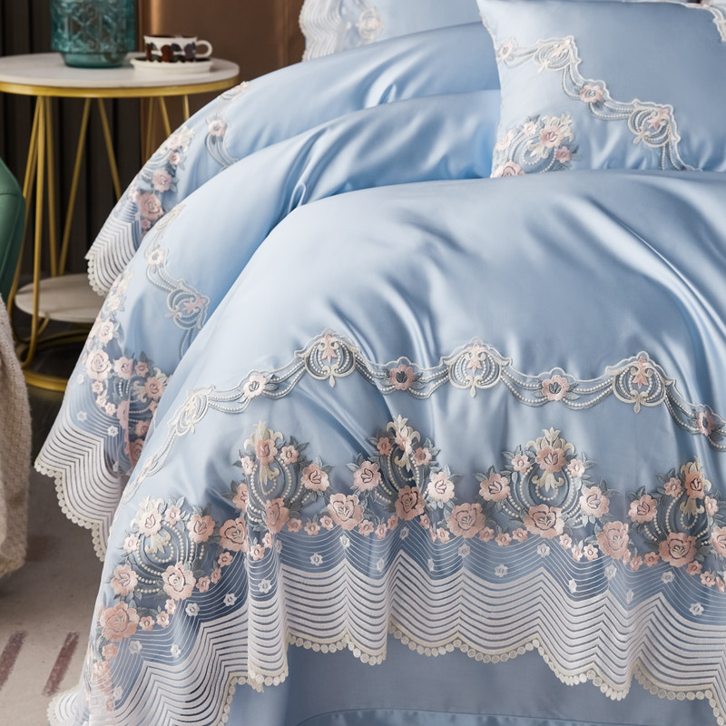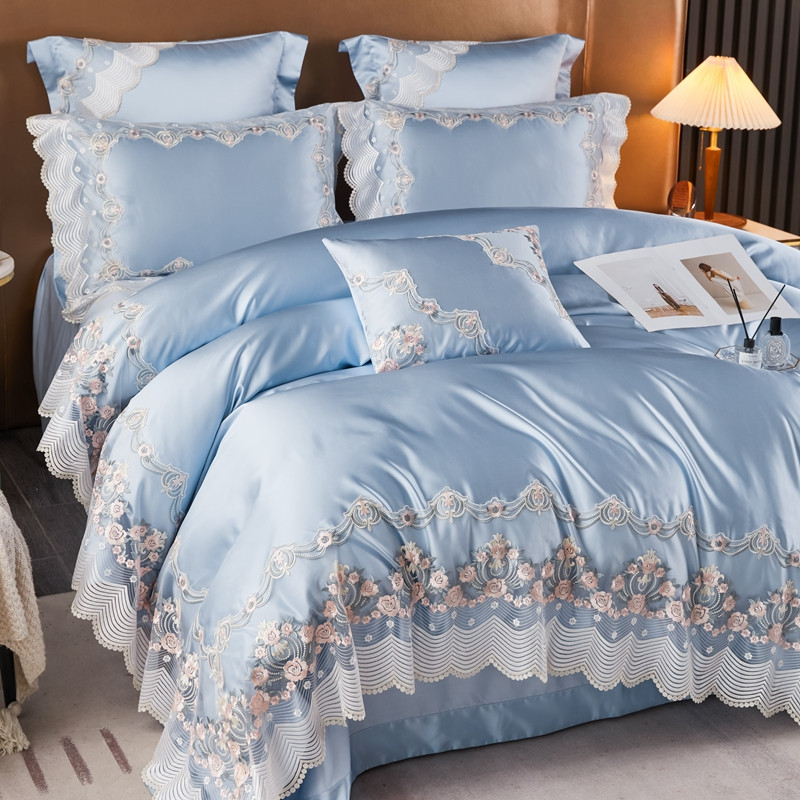 当前位置: 91家纺网 > 商品网购 > 床品套件 > 四件套 > 全棉普通四件套 > 缔缦 2023新款安娜系列高端居家轻奢真丝棉四件套 安娜-蓝