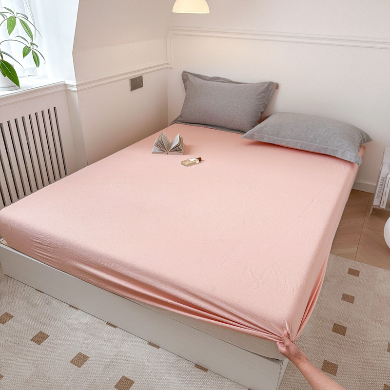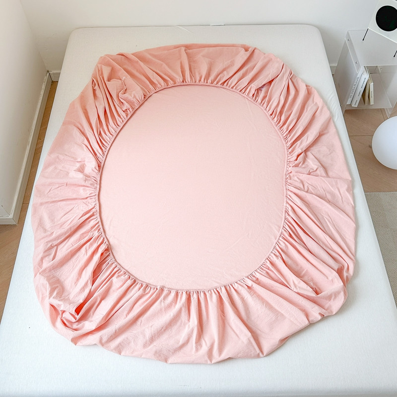 嘉汀兰 2023新款全棉色织水洗棉纯色撞色款单床笠 少女粉