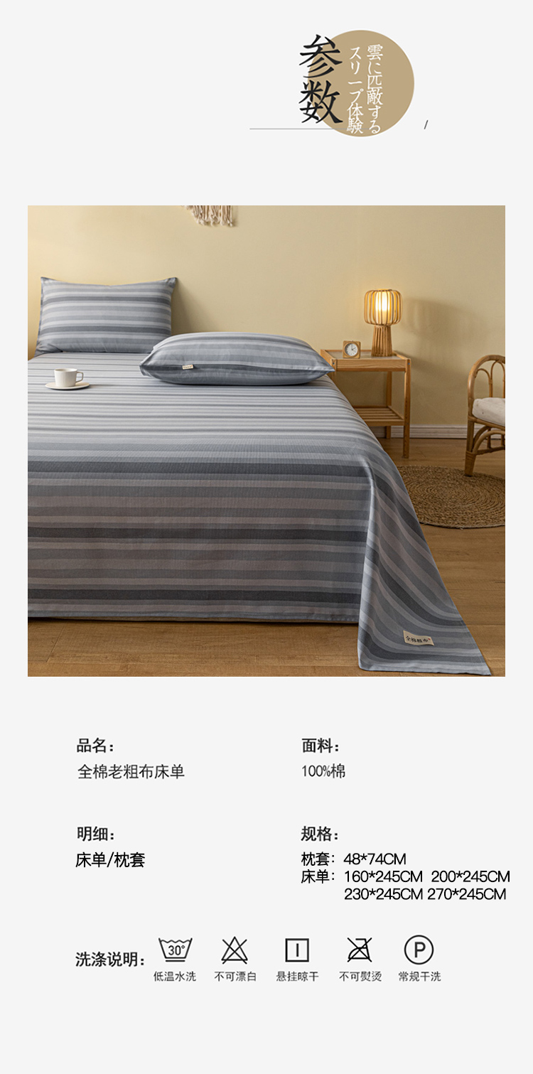 商品名称:卧趣家纺 2023新款全棉老粗布单品系列单床单 晴山-兰