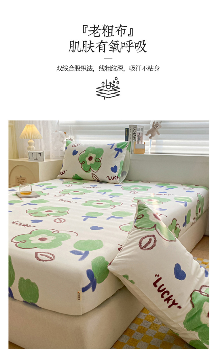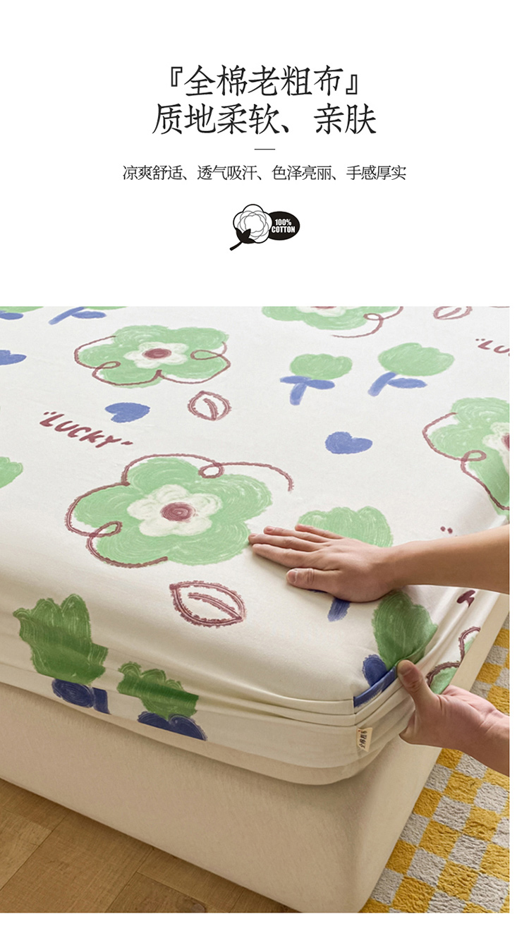 卧趣家纺 2023新款全棉老粗布单品系列单床笠 简笔画