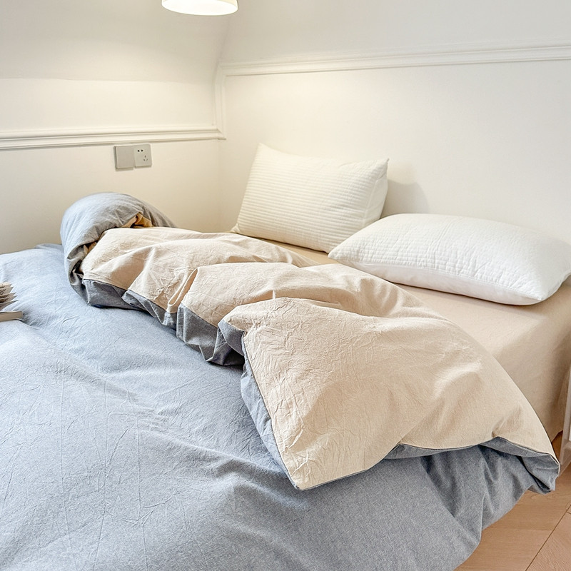 商品名称:嘉汀兰 2023新款全棉色织水洗棉纯色撞色款单被套 曲奇巧克力