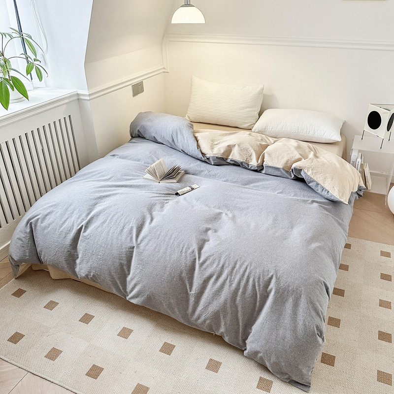 嘉汀兰 2023新款全棉色织水洗棉纯色撞色款单被套 曲奇巧克力
