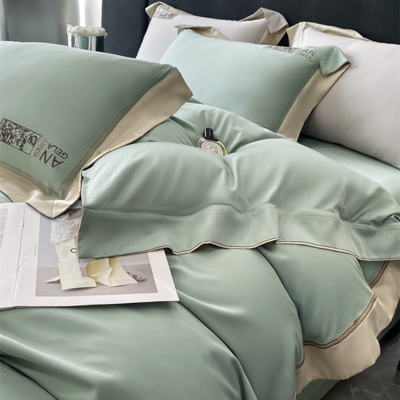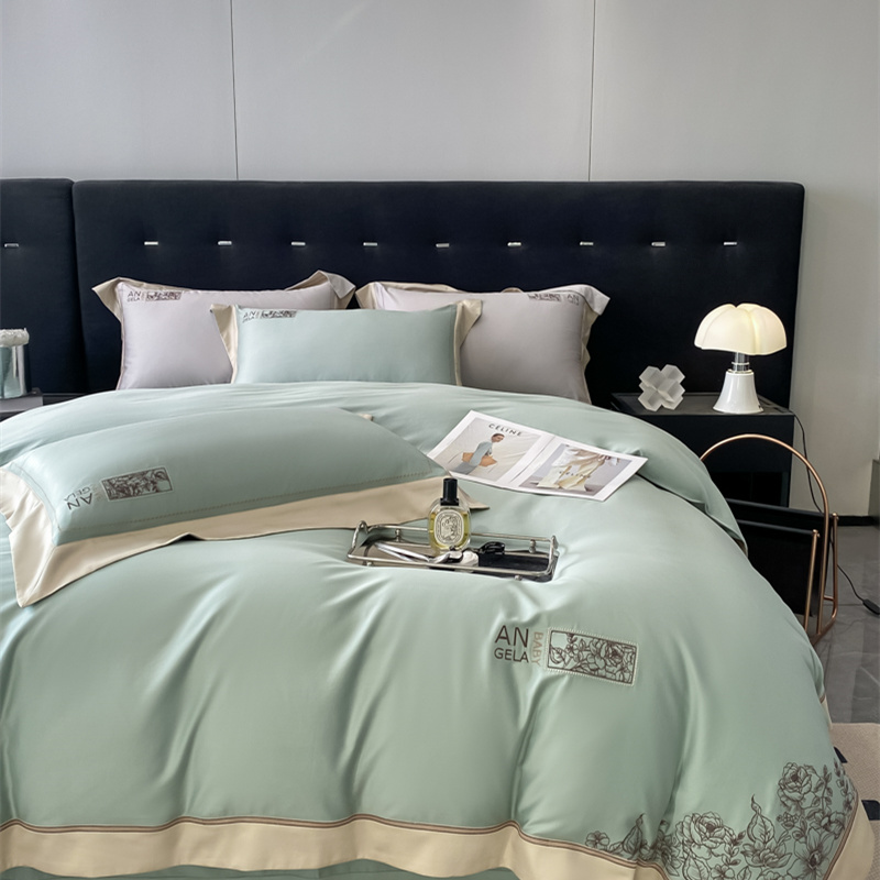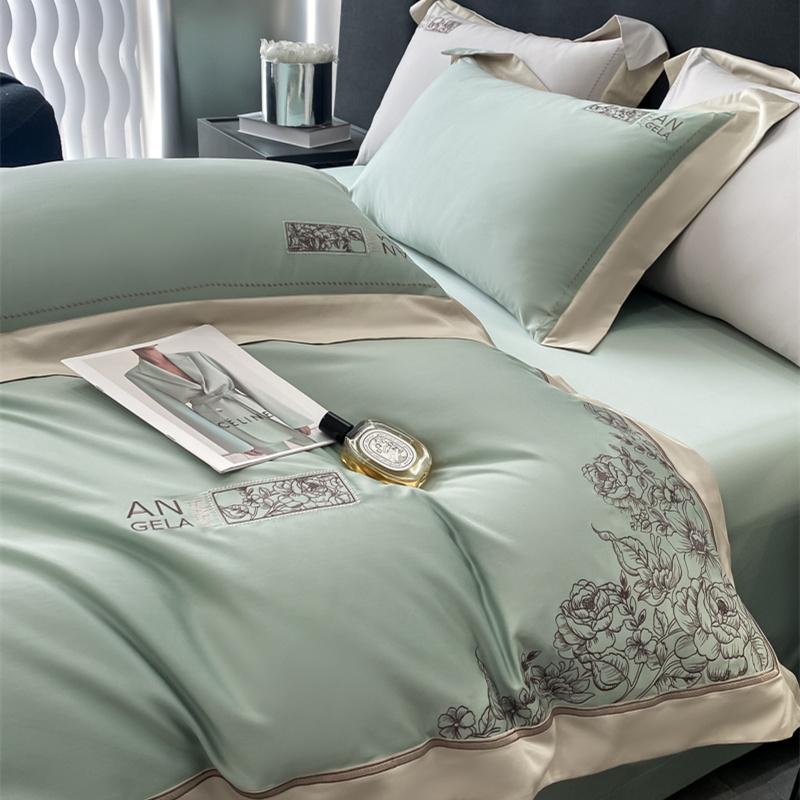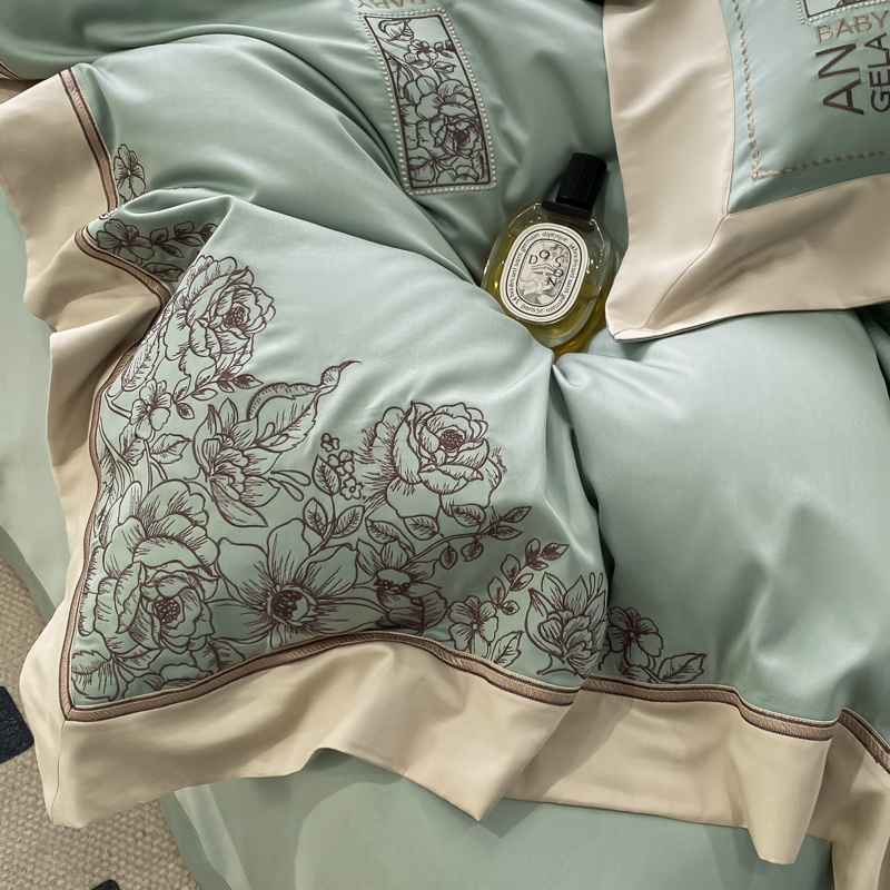 玖玖爱花漾-100支全棉太妃缎刺绣四件套 沧浪绿