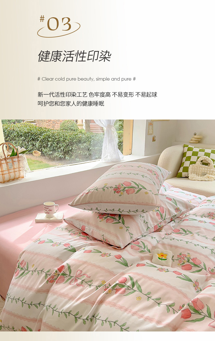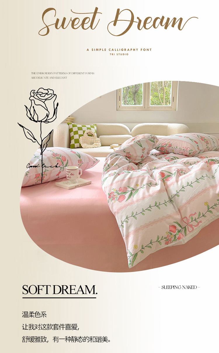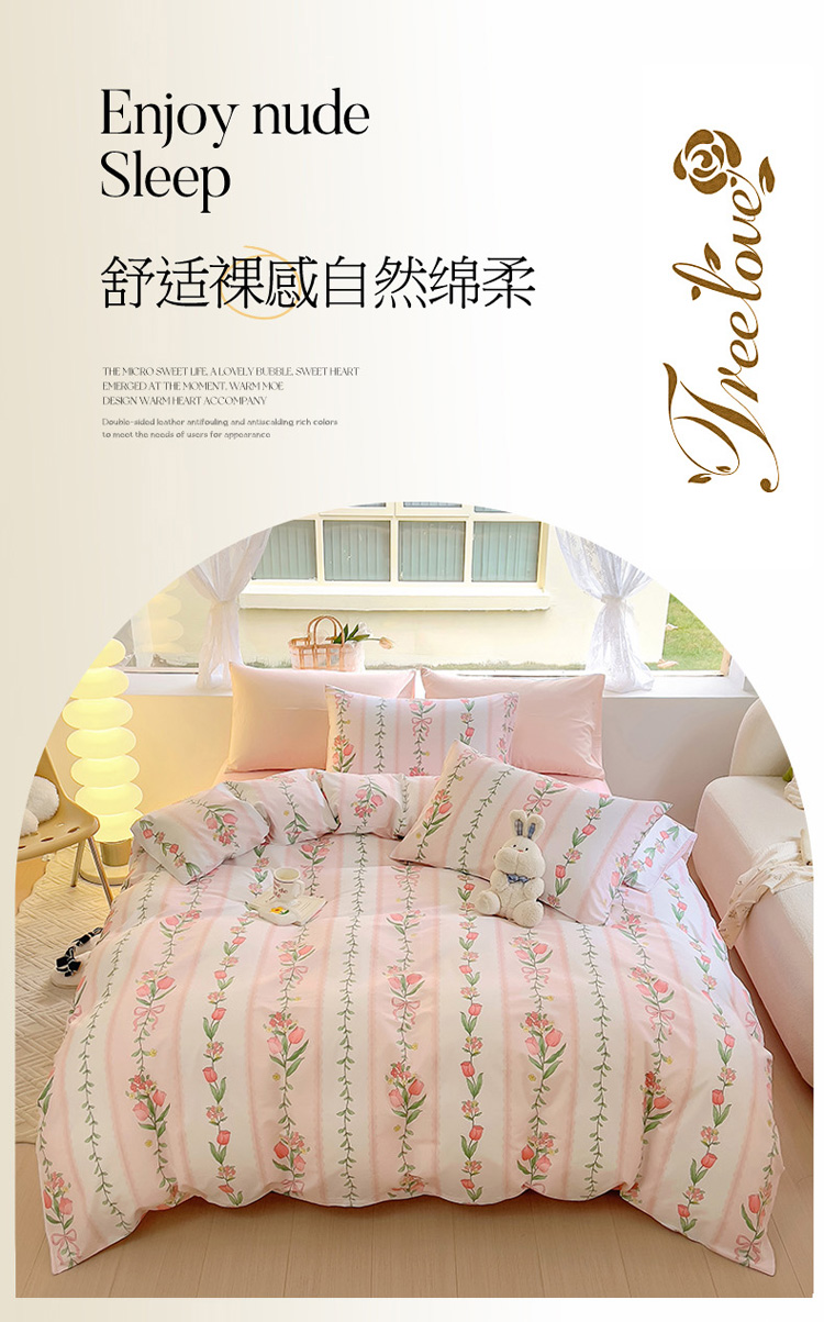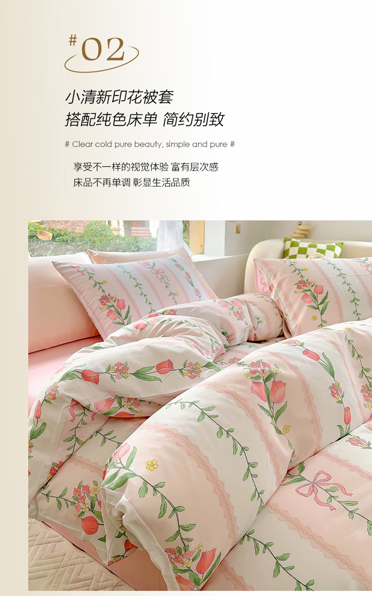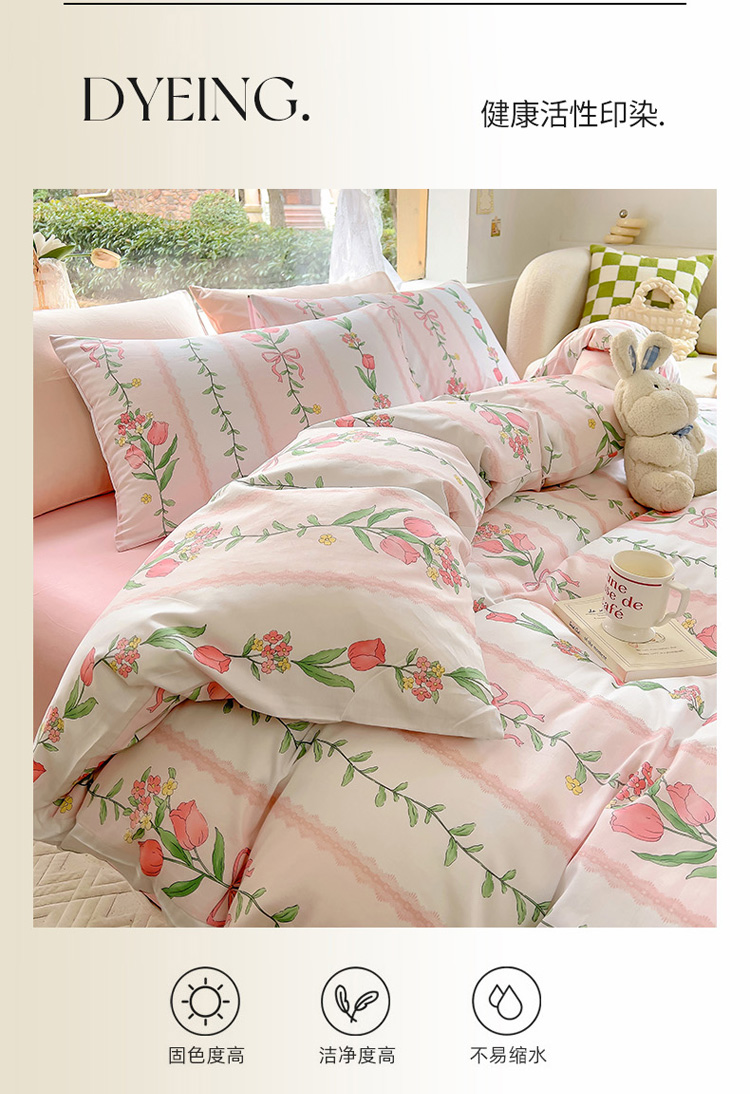 (总)田野 2022新款水洗棉小清新小碎花全棉四件套,花丛,花涧,绿婉,曼舞,桃夭,甜馨草莓,兔兔,银杏