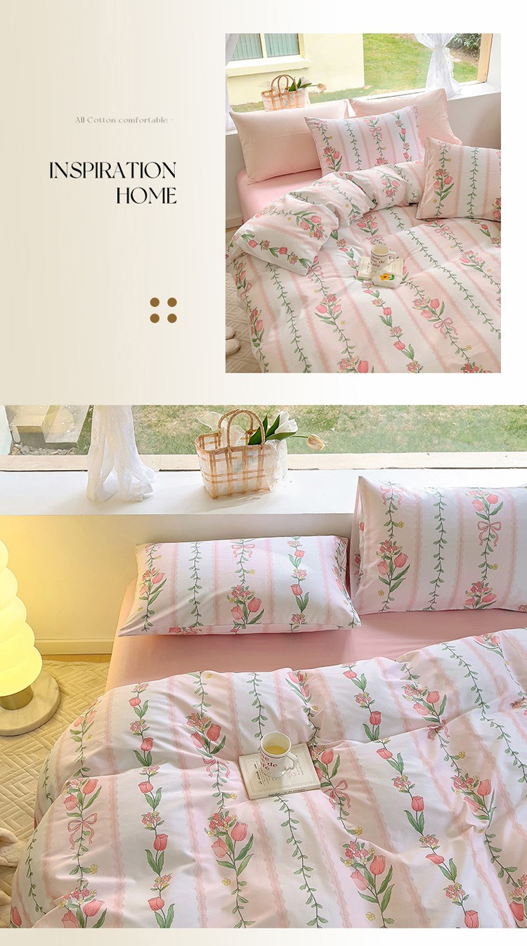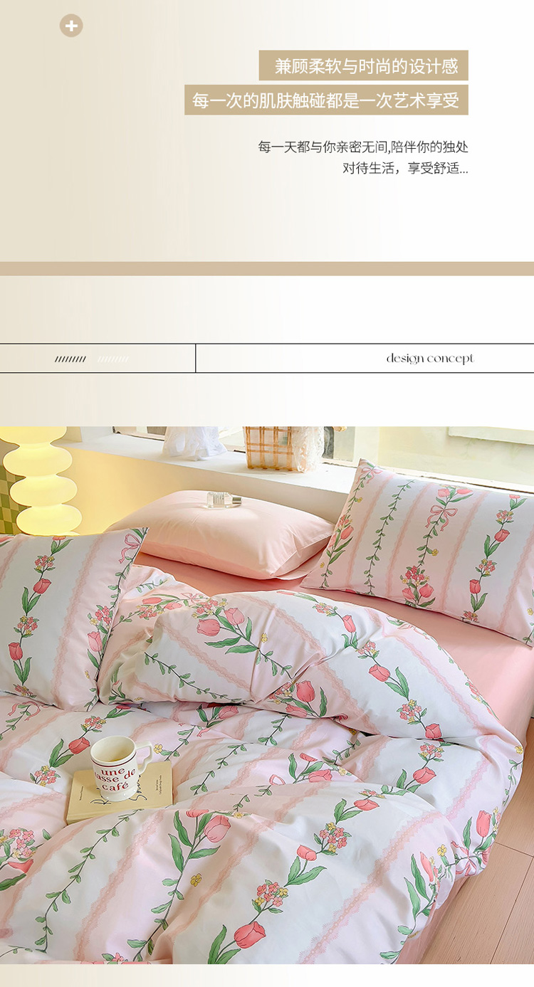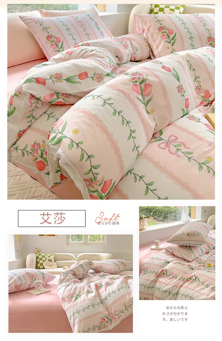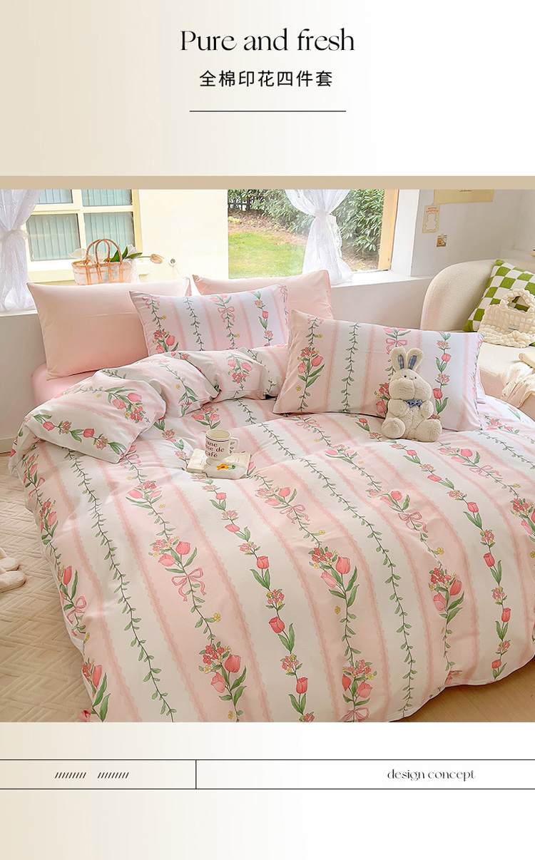 (总)田野 2022新款水洗棉小清新小碎花全棉四件套,花丛,花涧,绿婉,曼舞,桃夭,甜馨草莓,兔兔,银杏