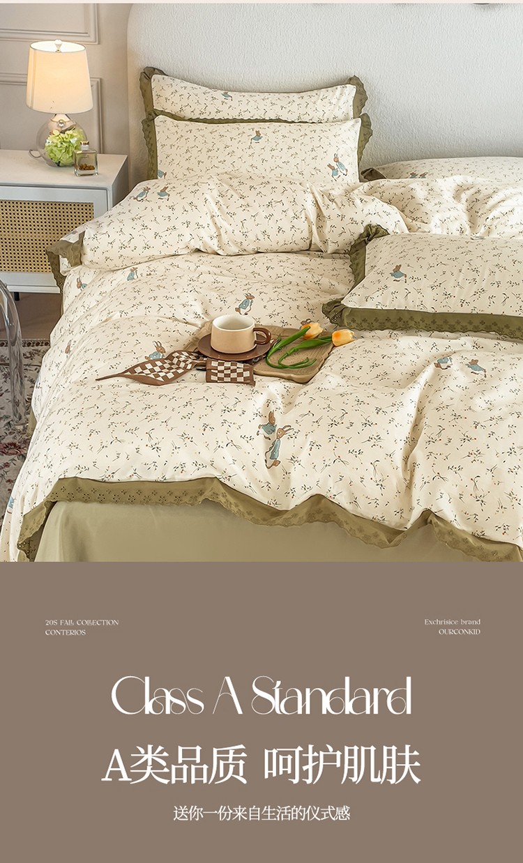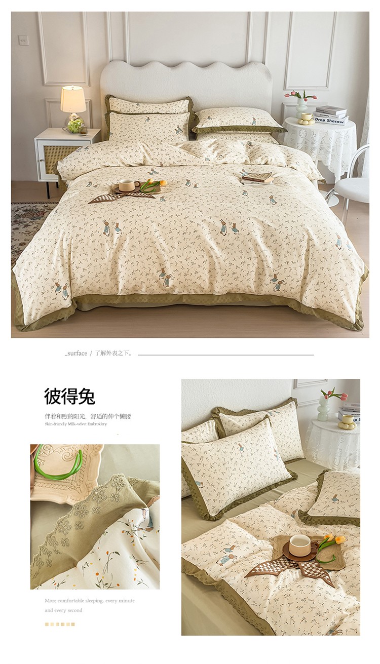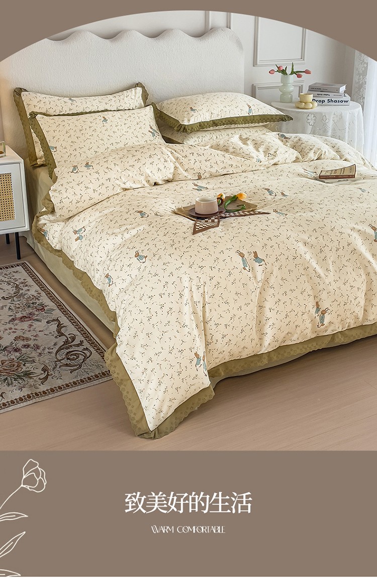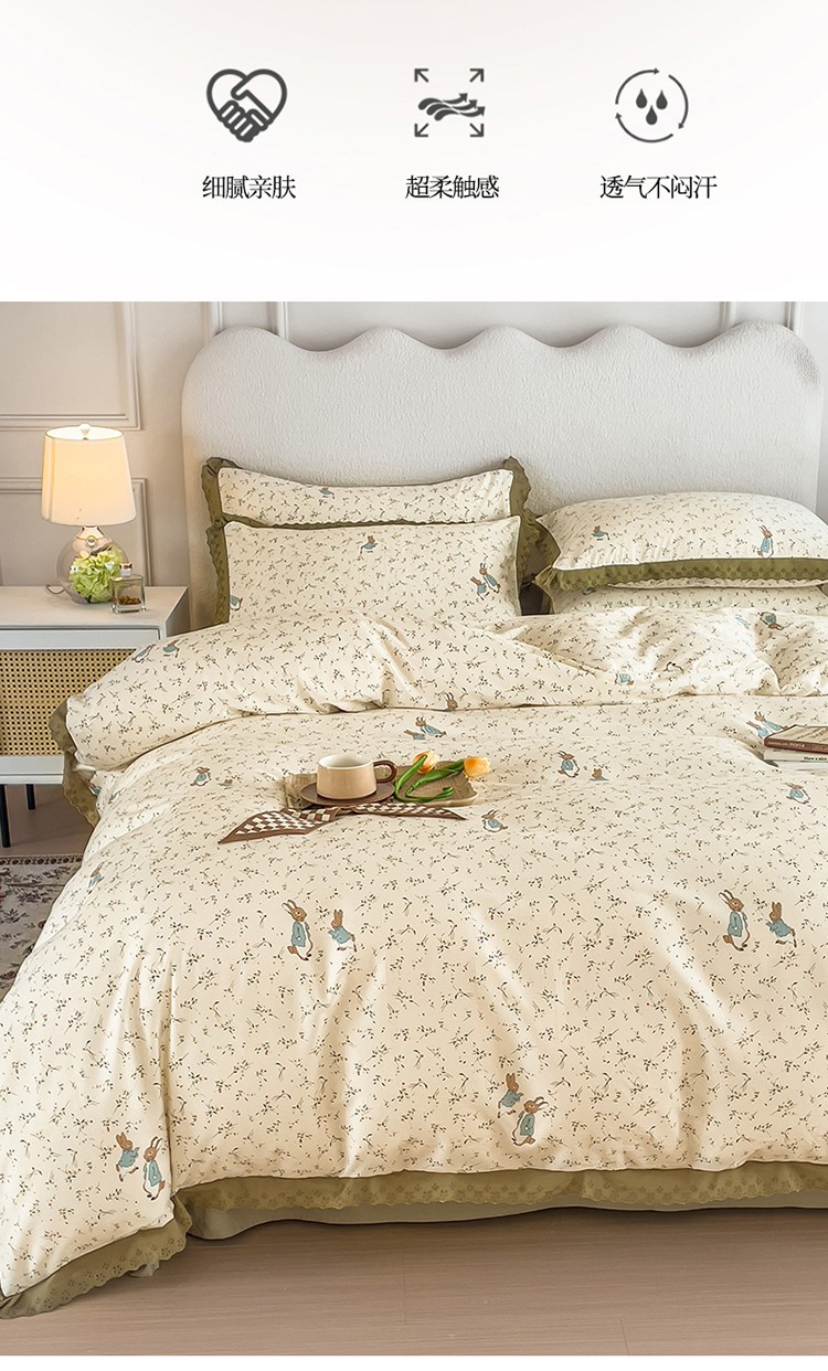 商品名称:KA家纺 2023春夏新款复古全棉花边四件套 彼得兔