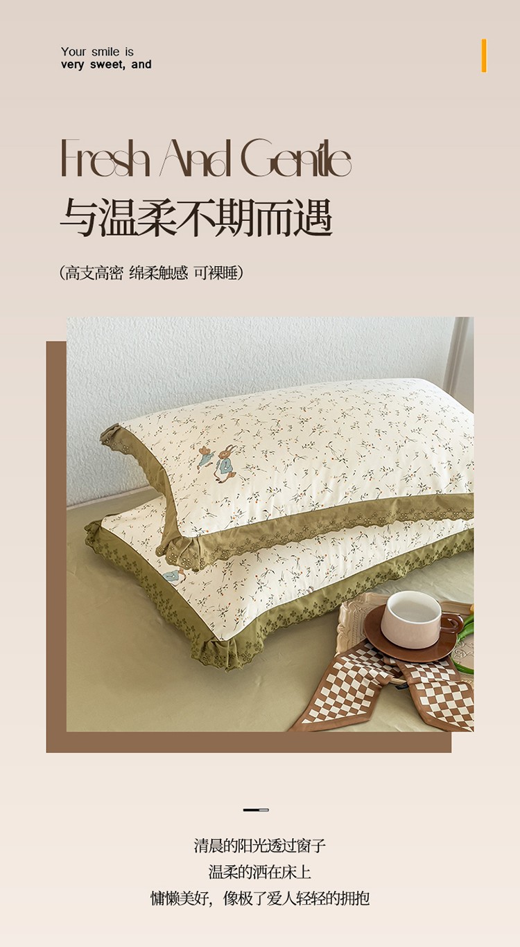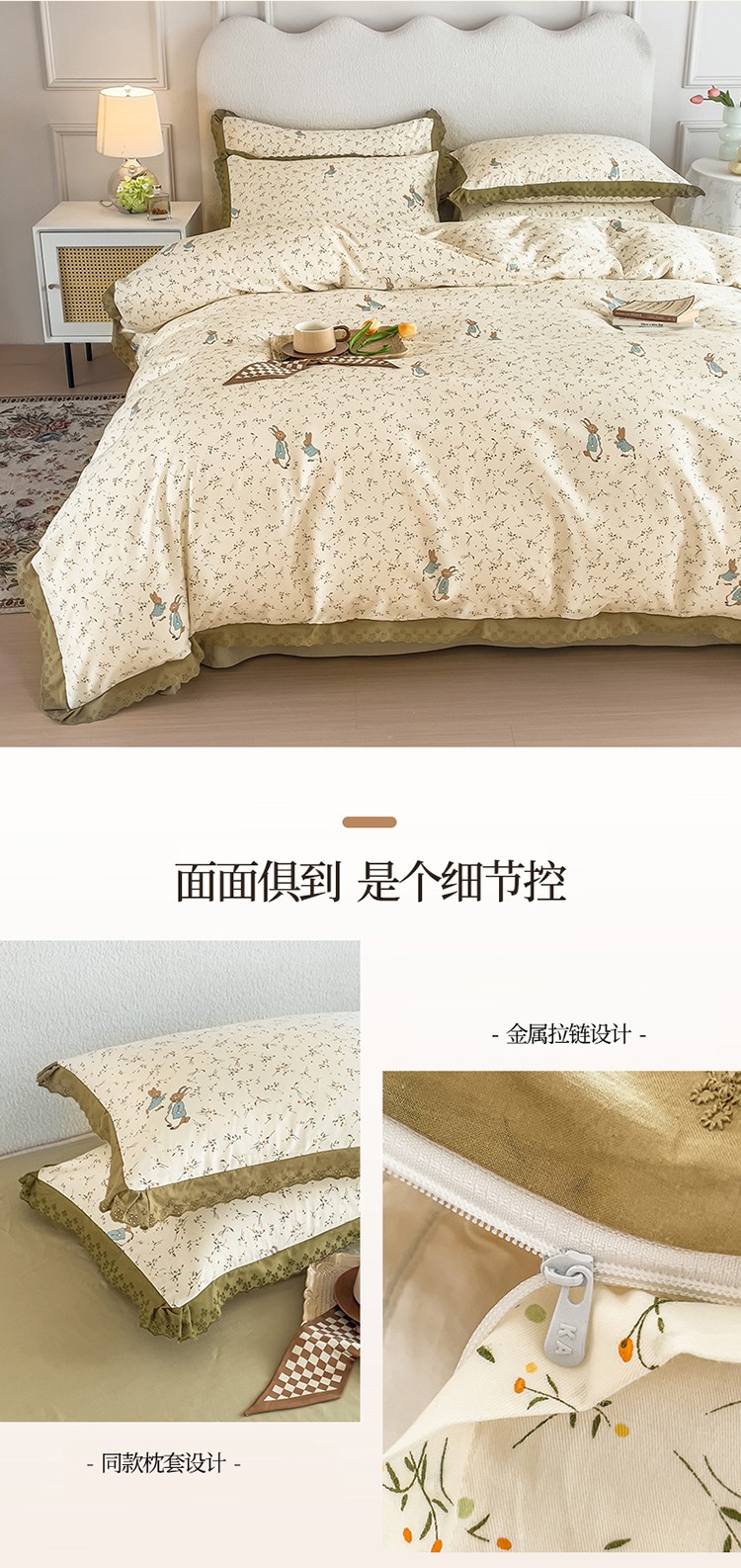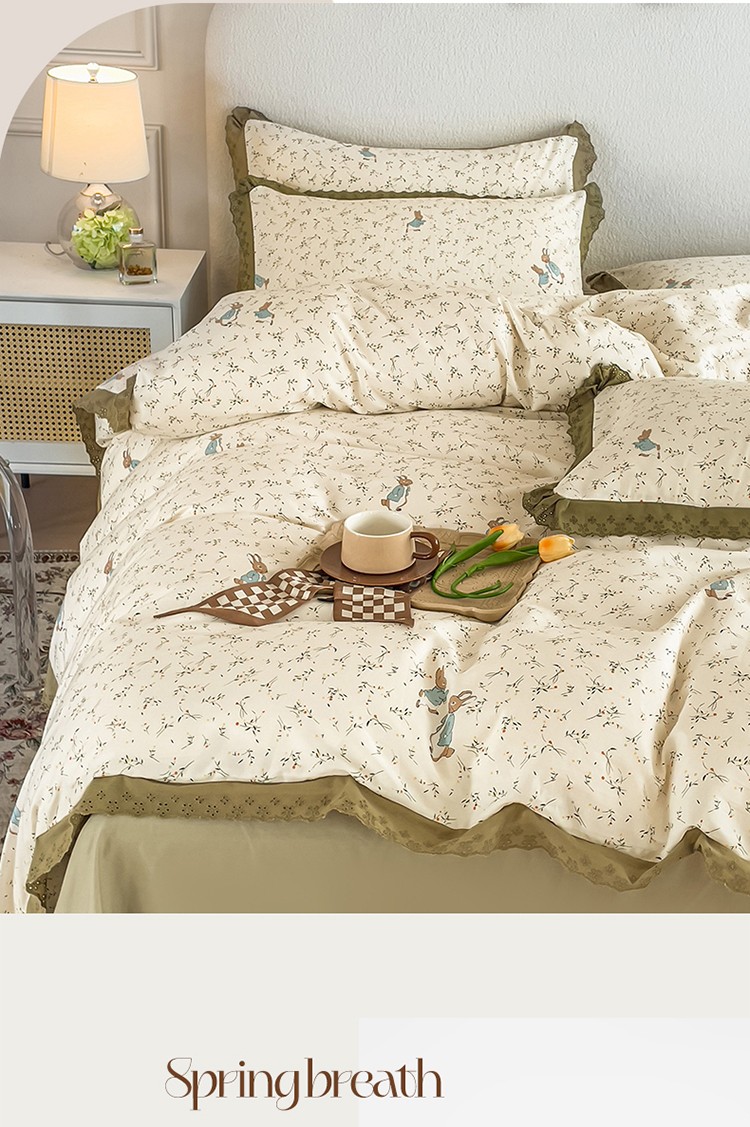 商品名称:KA家纺 2023春夏新款复古全棉花边四件套 彼得兔