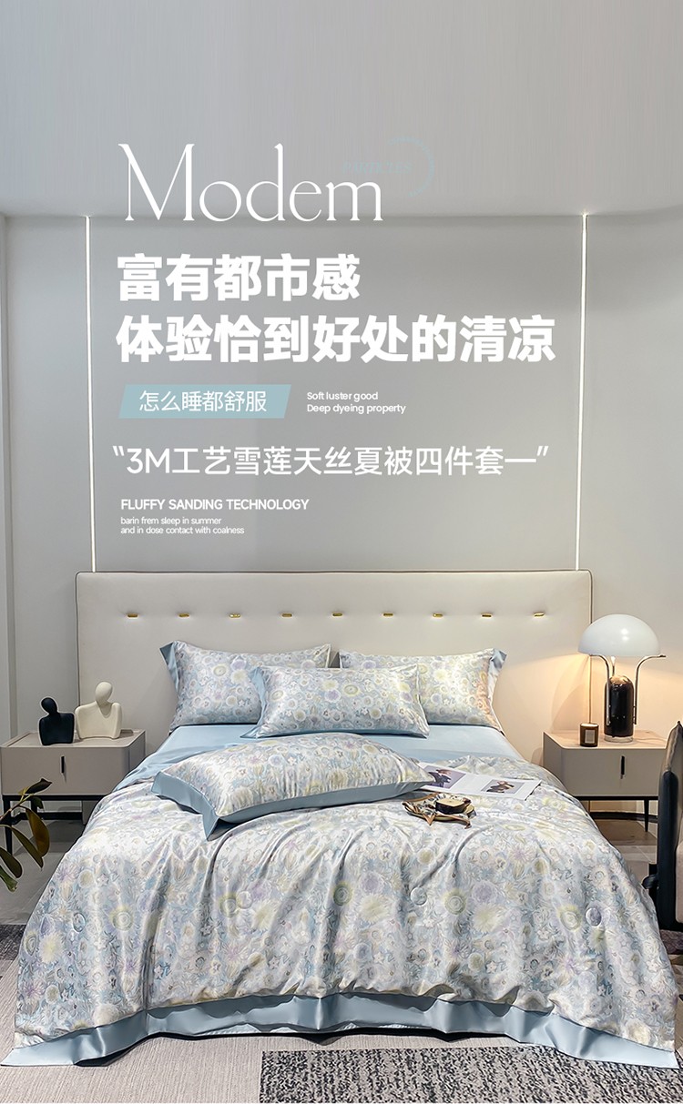 当前位置: 91家纺网 > 商品网购 > 床品套件 > 四件套 > 夏被四件套 > 澳梵家居 2023新款3M工艺雪莲天丝夏被四件套 睡莲