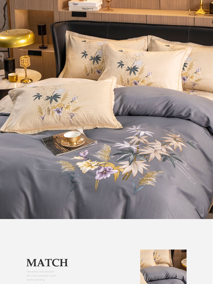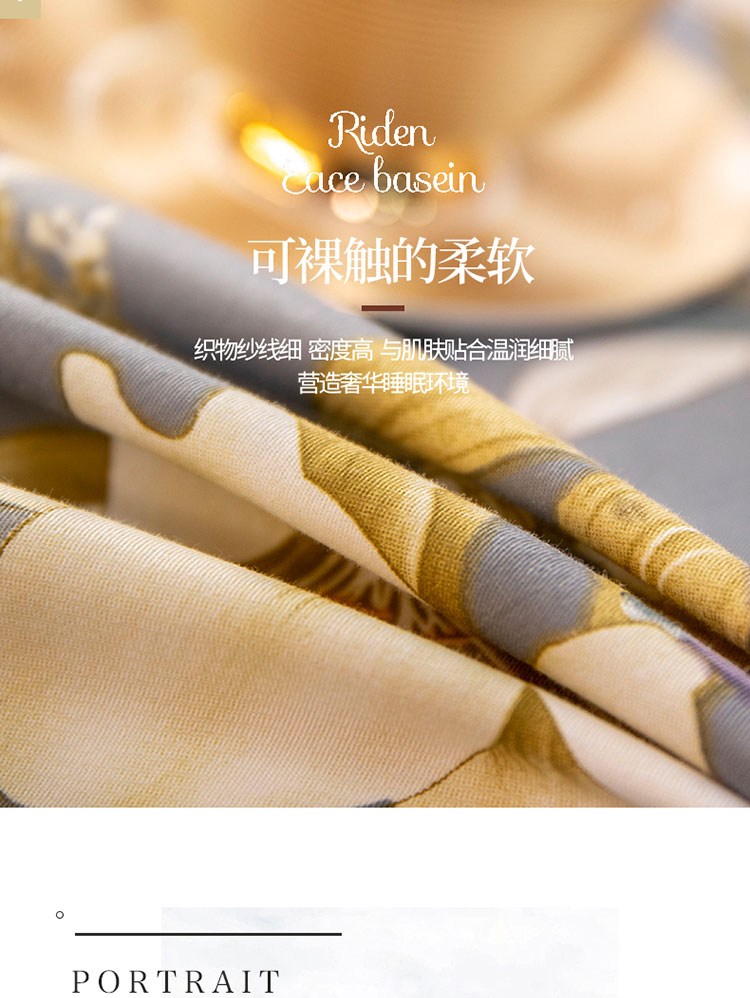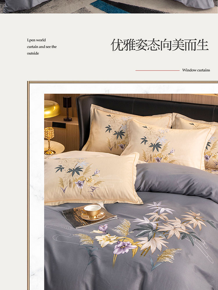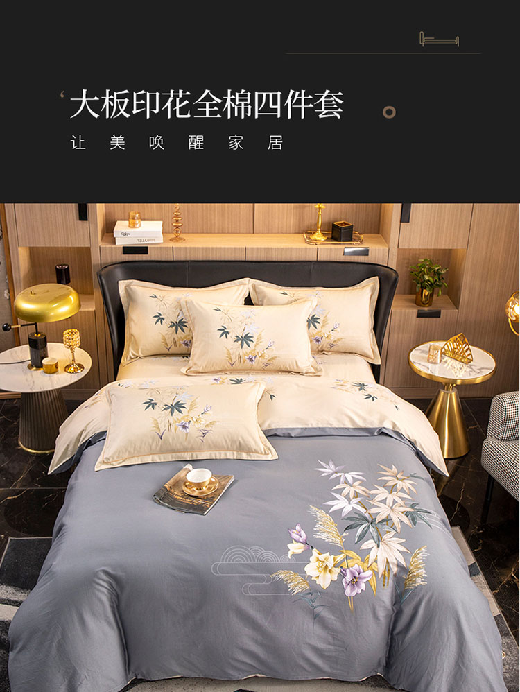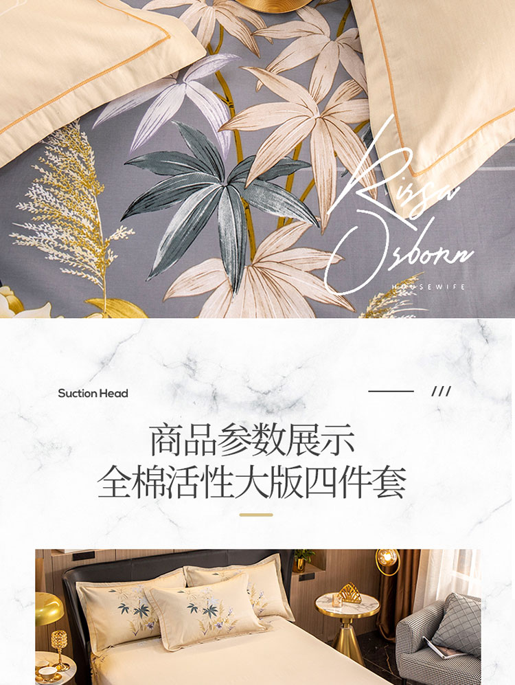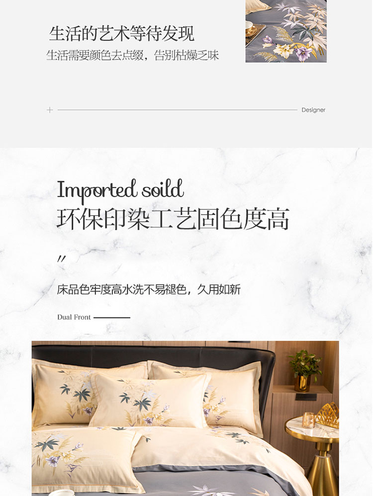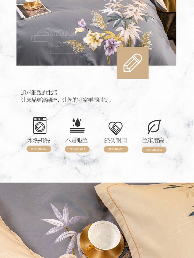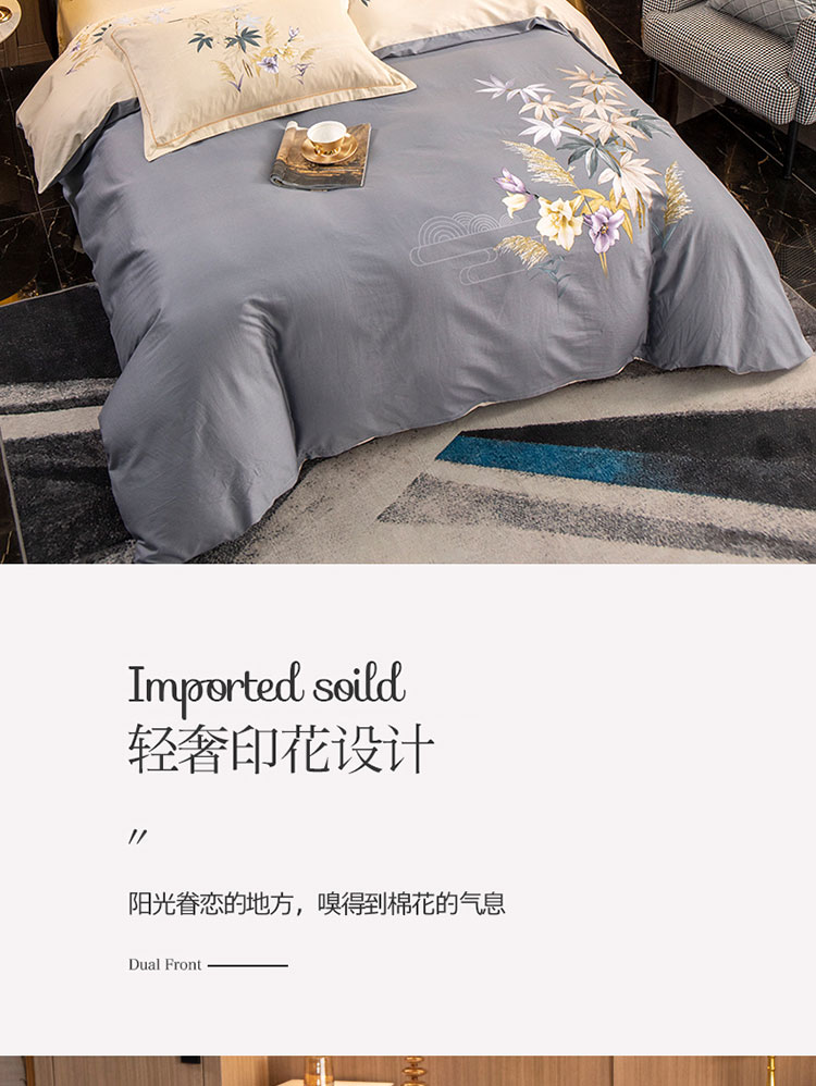 商品名称:雲归梦 2023新款13372大版活性四件套 莱茵春色-灰