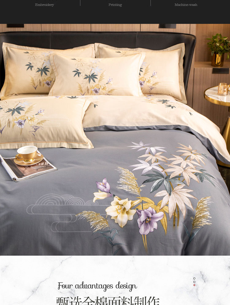 (总)雲归梦 2021新款全棉生态磨毛刺绣四件套,慕思-橙色,慕思-粉紫,慕思-灰,慕思-米黄,慕思-青绿,慕思-天蓝