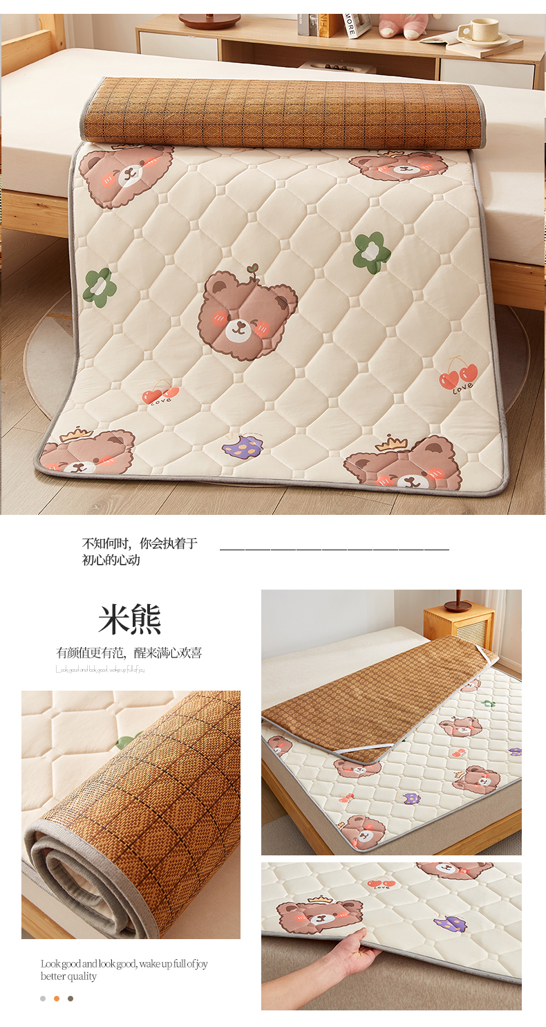 商品名称:花言狐语 2025新款AB双面可用藤席夹棉床褥地垫单人款 米熊