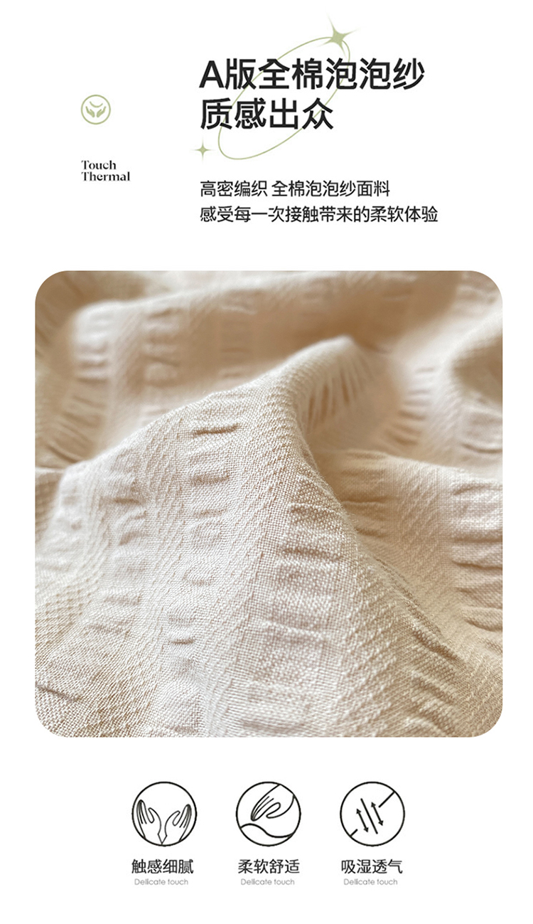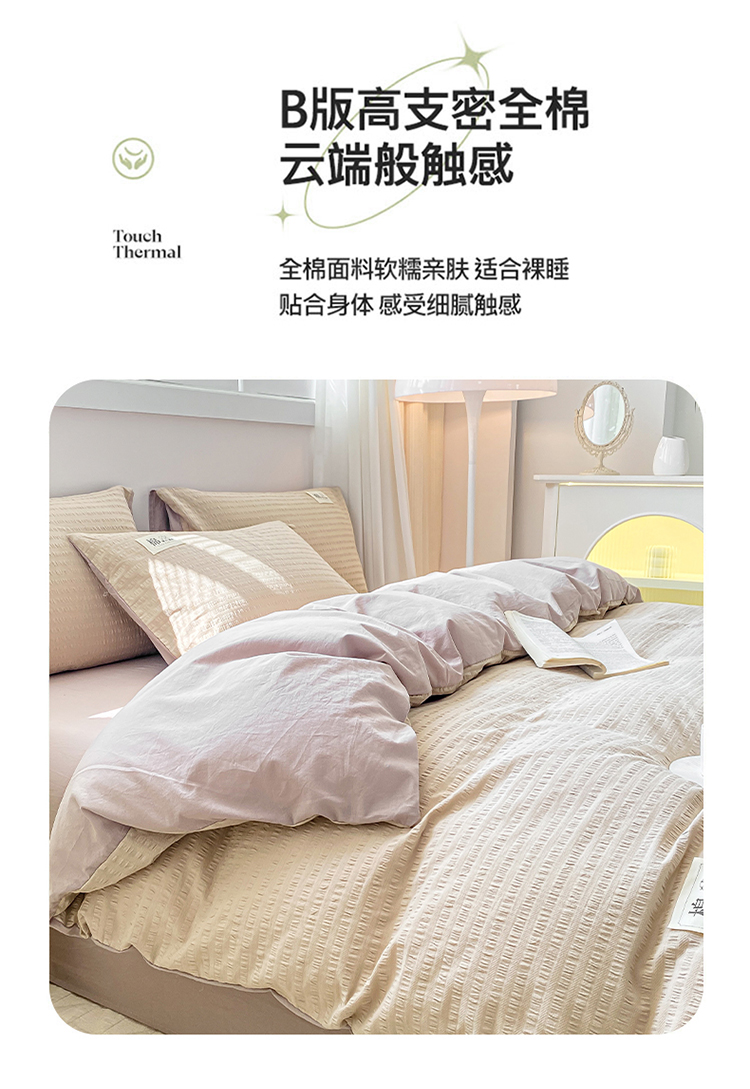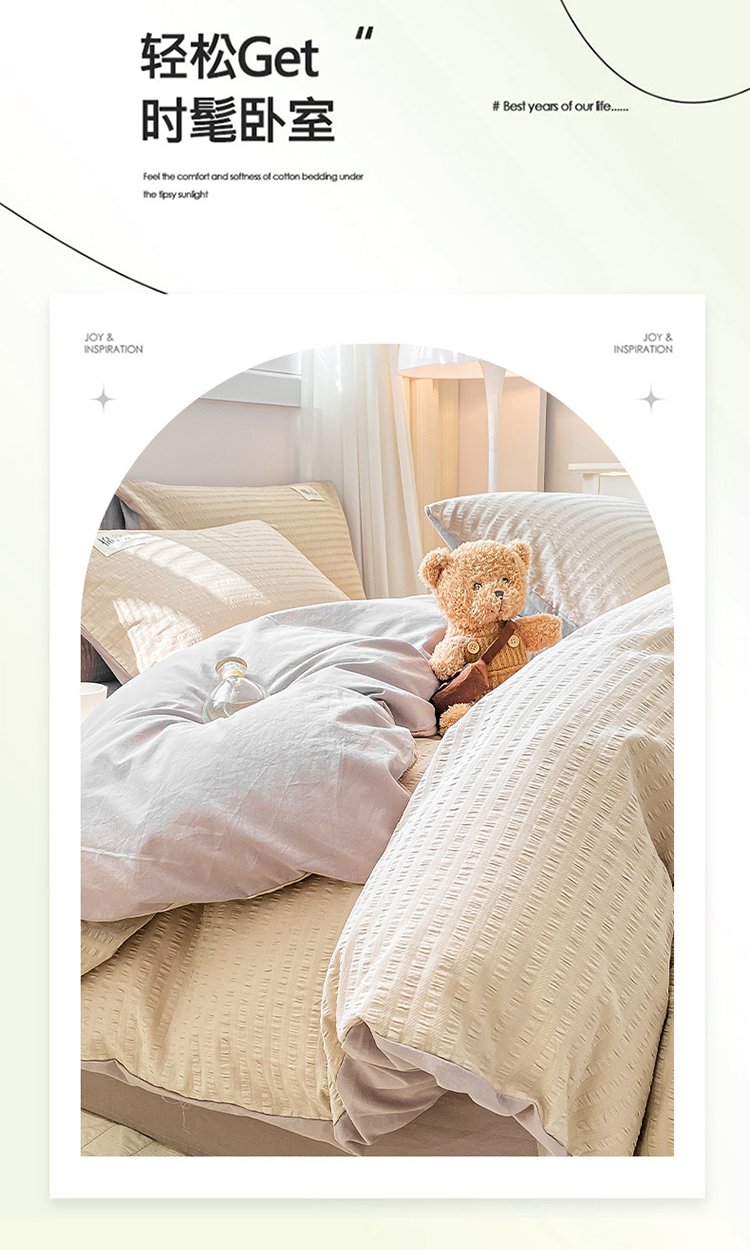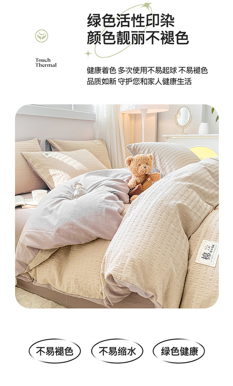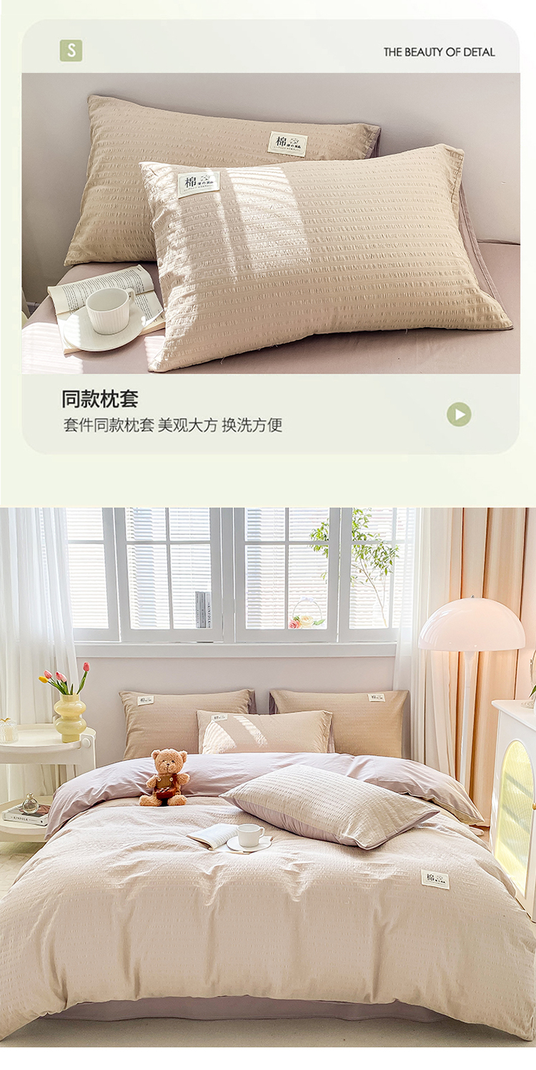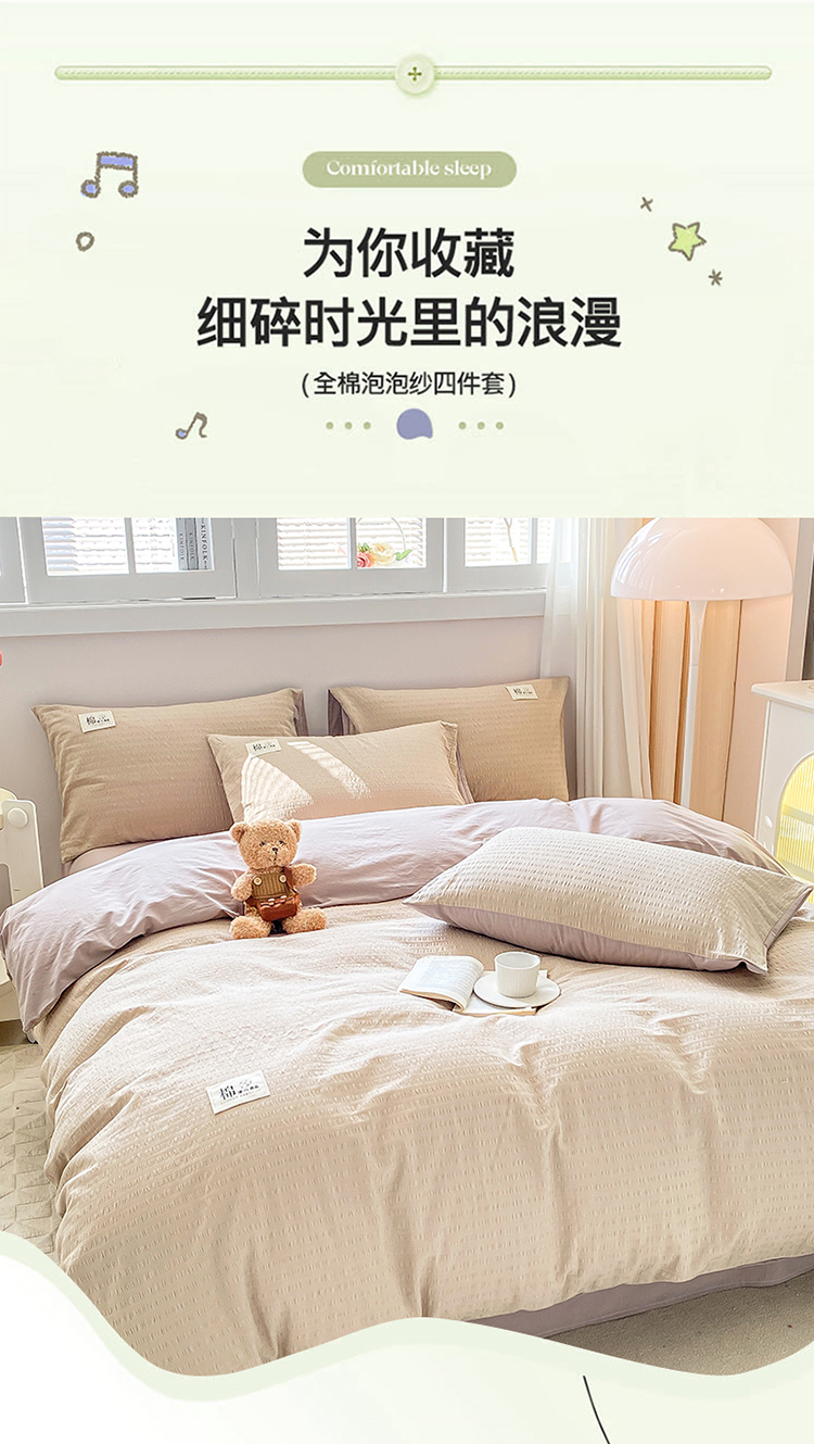 商品名称:九沐良品 新款全棉泡泡纱四件套 香槟色