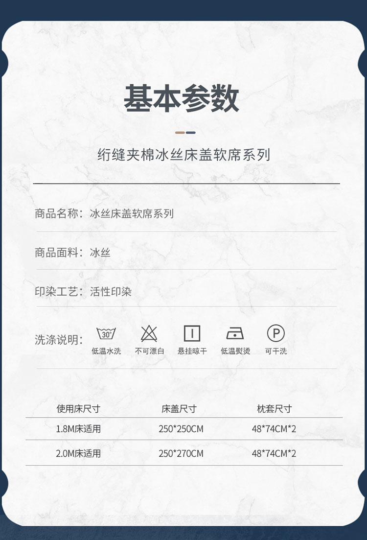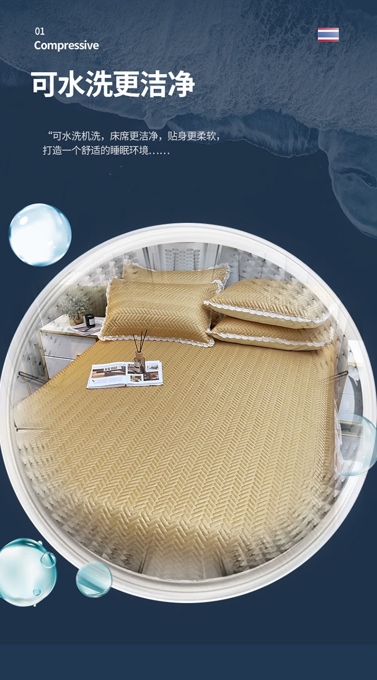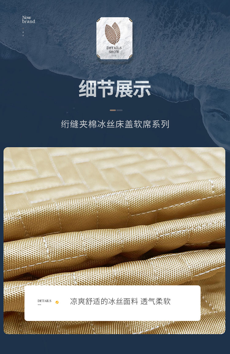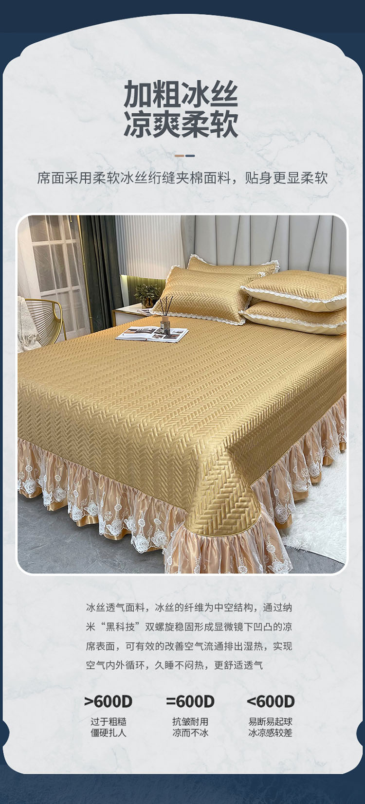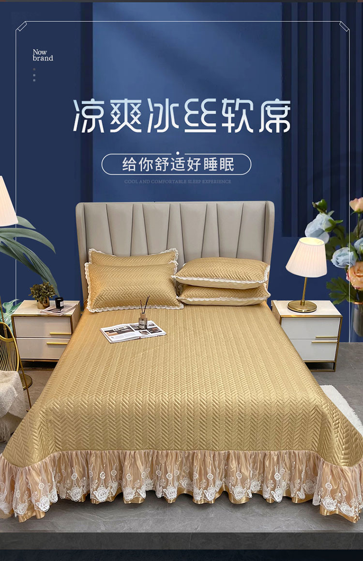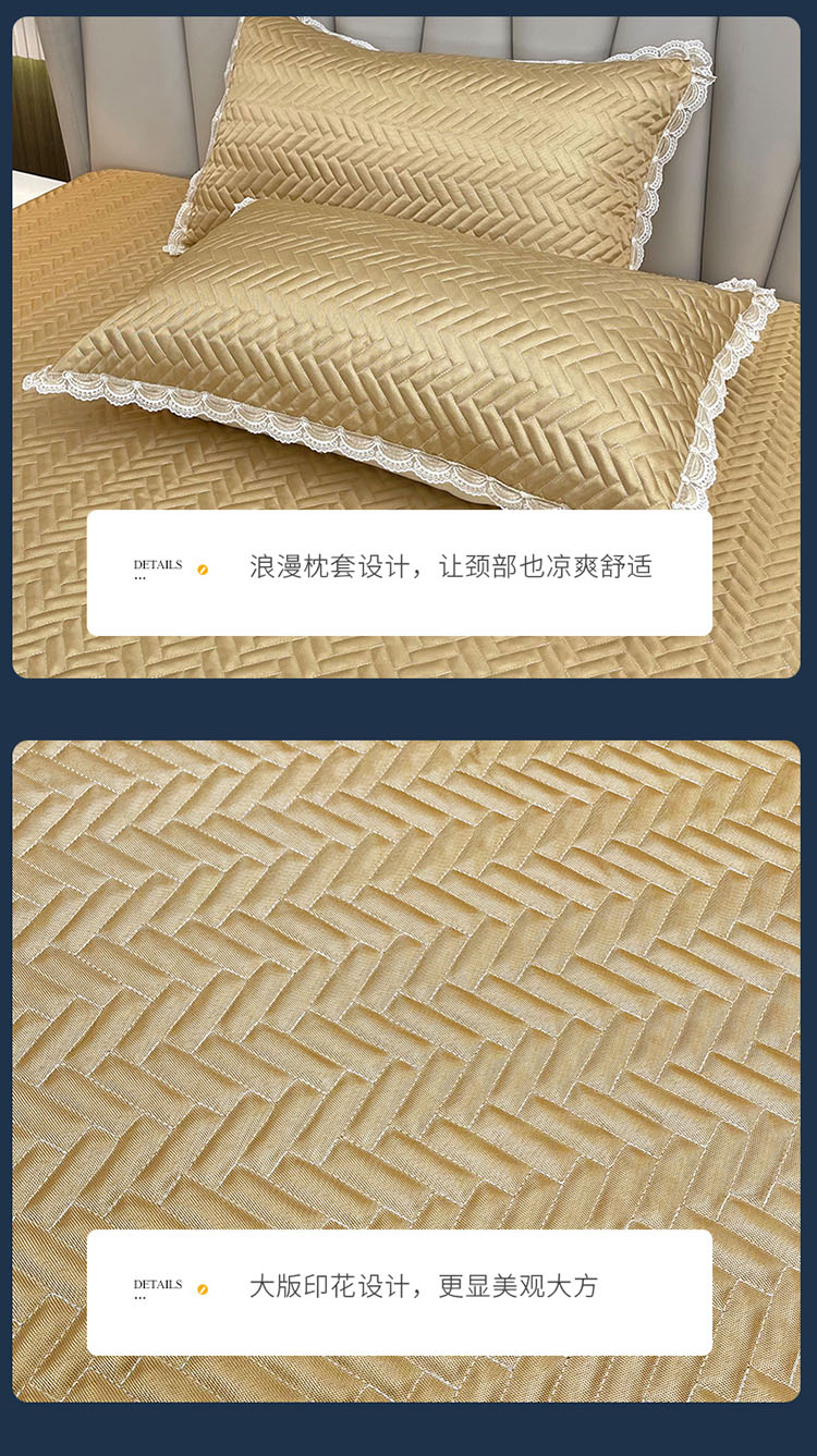 商品名称:恋尚 2023新款冰丝夹棉纯色床盖款软凉席三件套 伽罗金