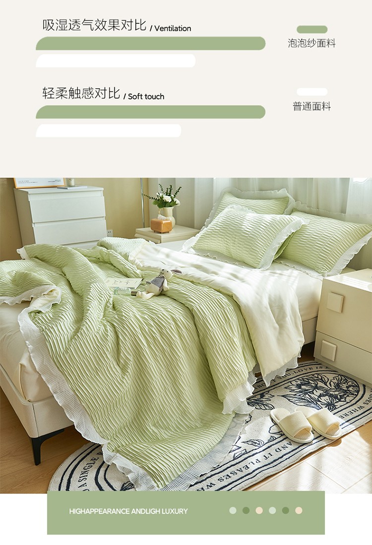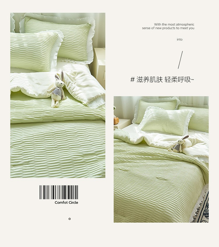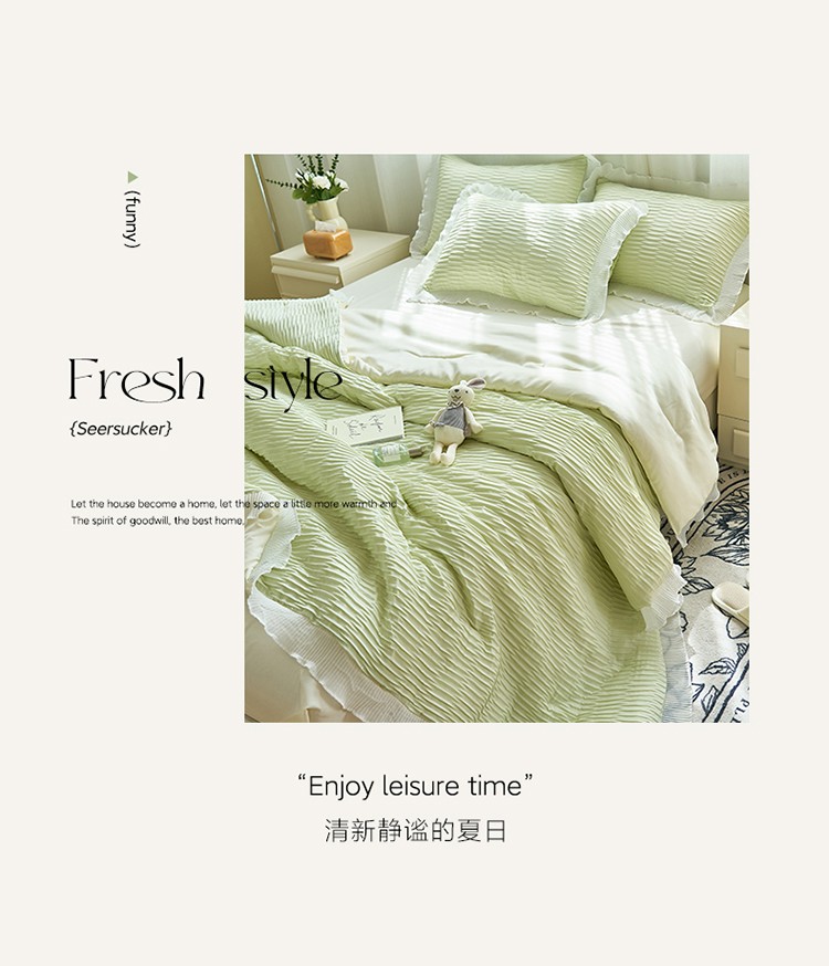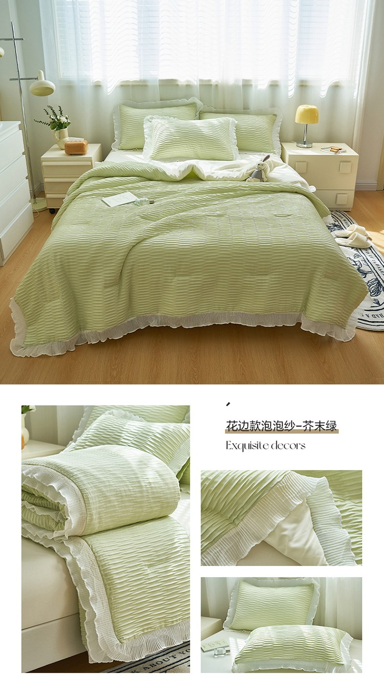 当前位置: 91家纺网 > 商品网购 > 床品套件 > 四件套 > 夏被四件套 > 畅销被业 2024新款泡泡纱花边夏被四件套 花边款泡泡纱-芥末绿