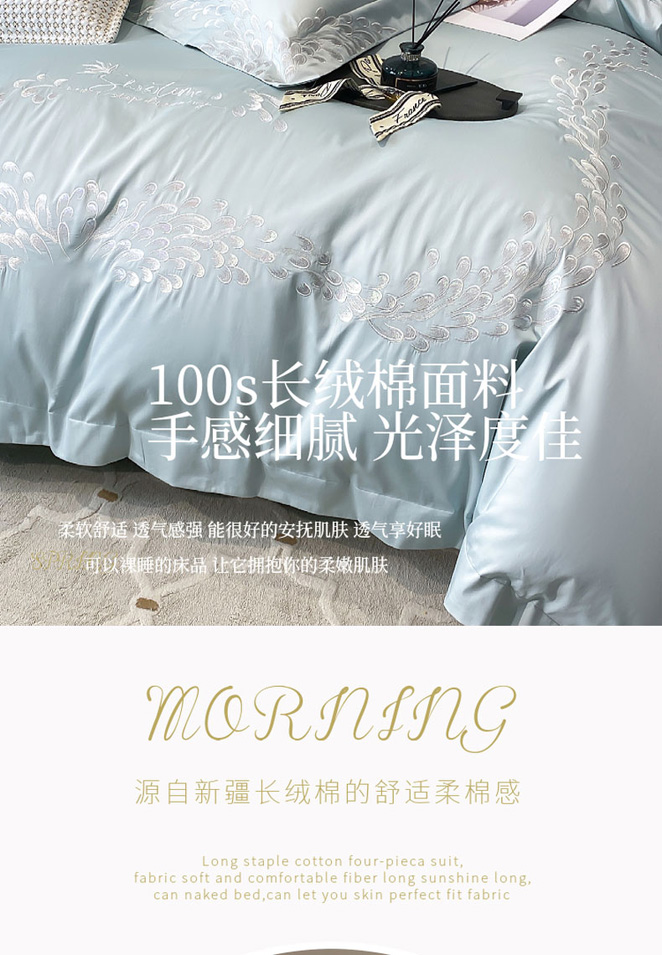 商品名称:亲亲公主 2025新款100支全棉四件套-羽衣 羽衣绿色