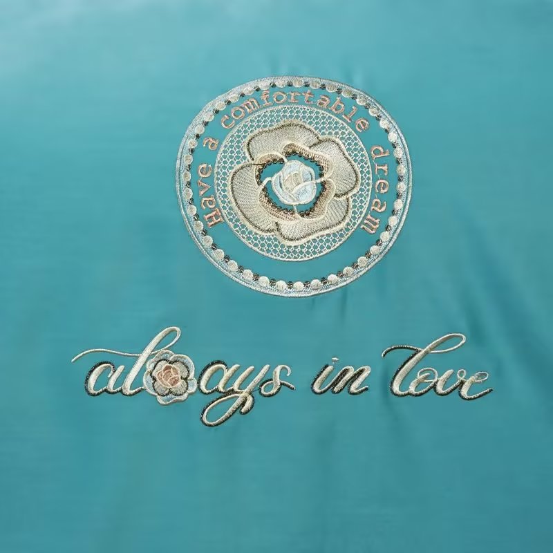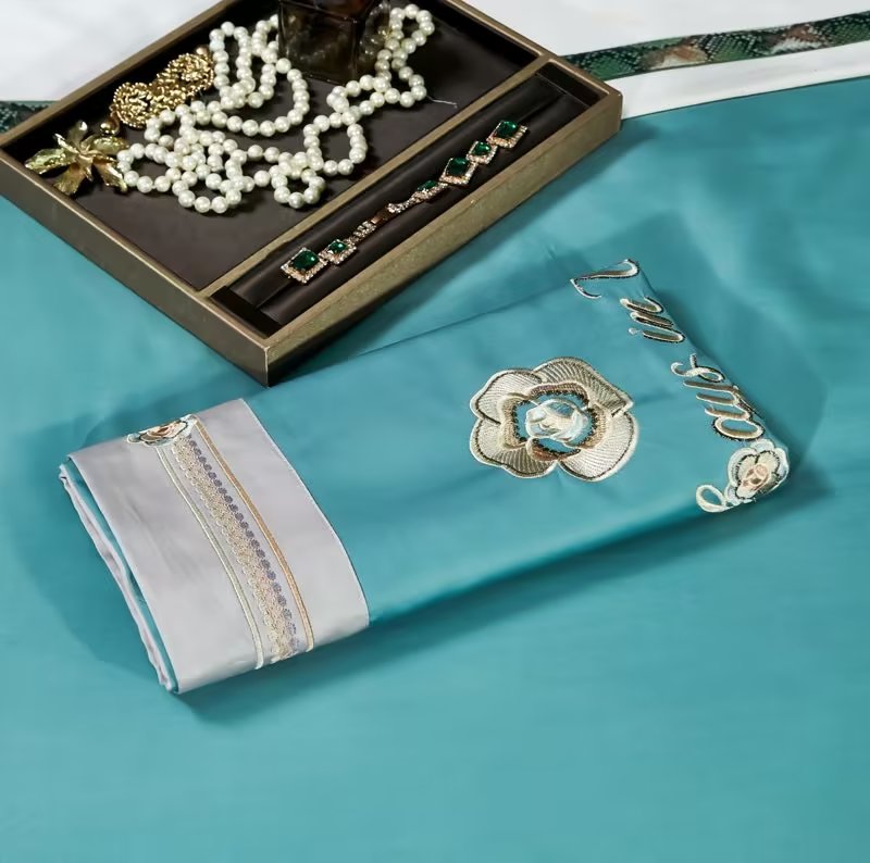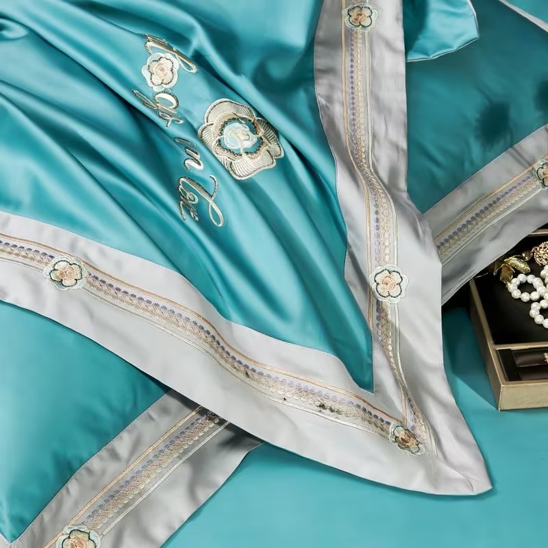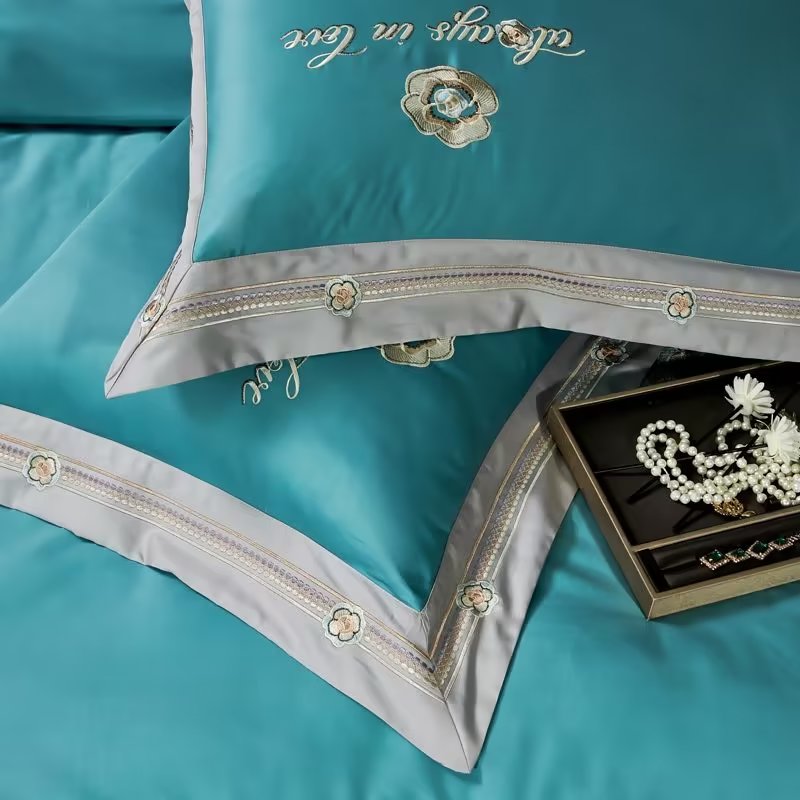 U品汇 2023新品120支60S长绒棉宽边刺绣花贡缎纯棉全棉四件套 奢雅-晴空蓝