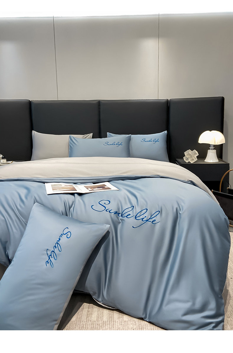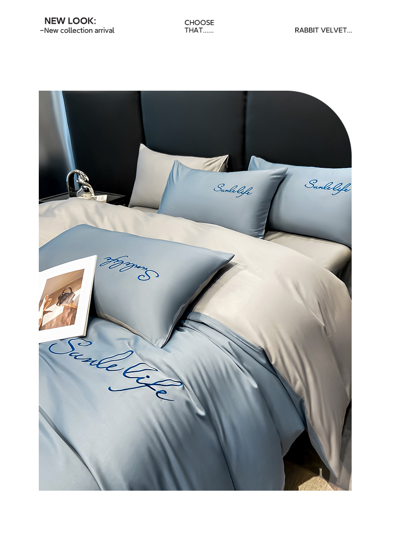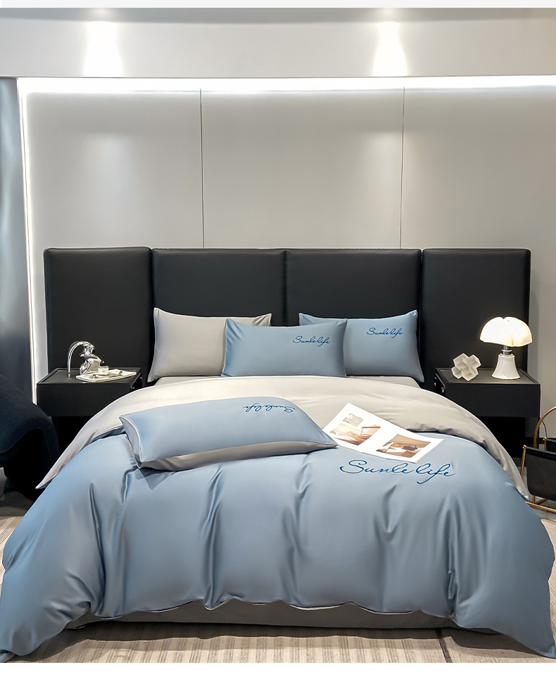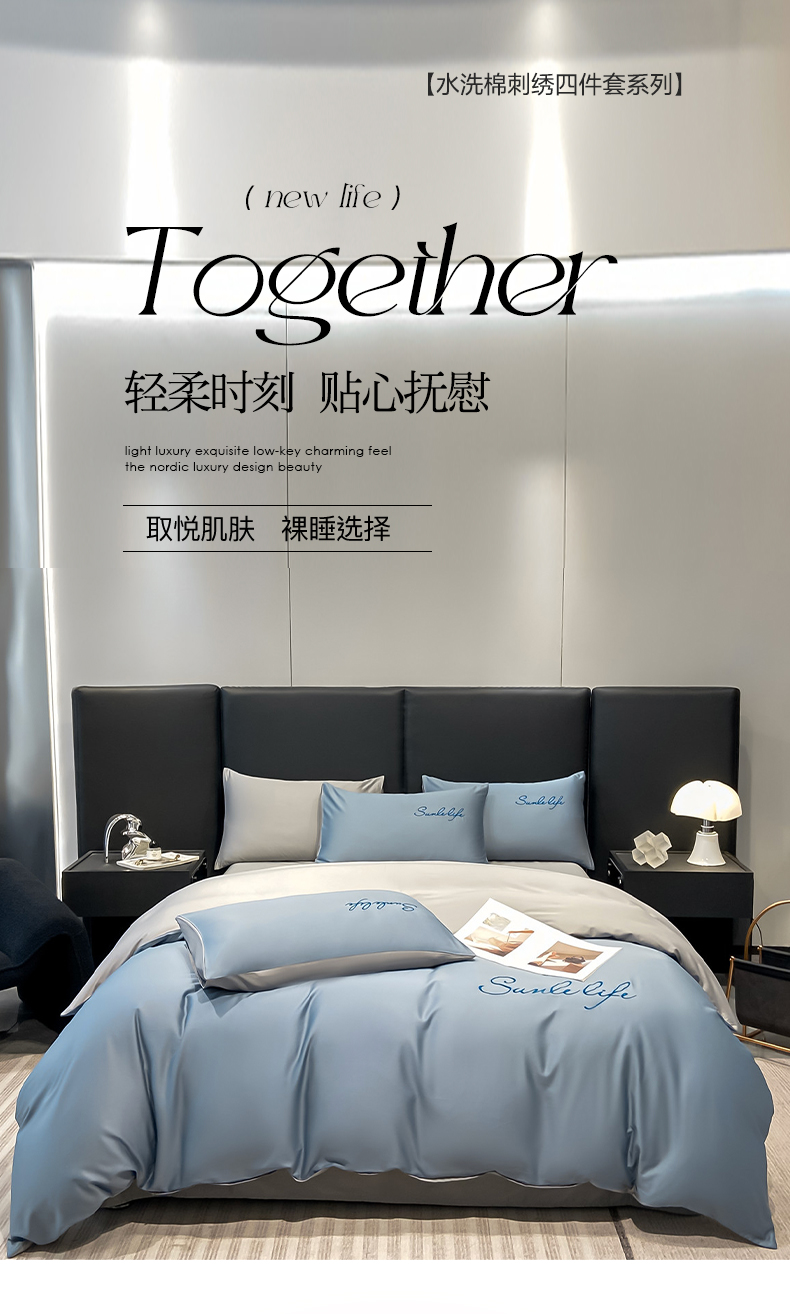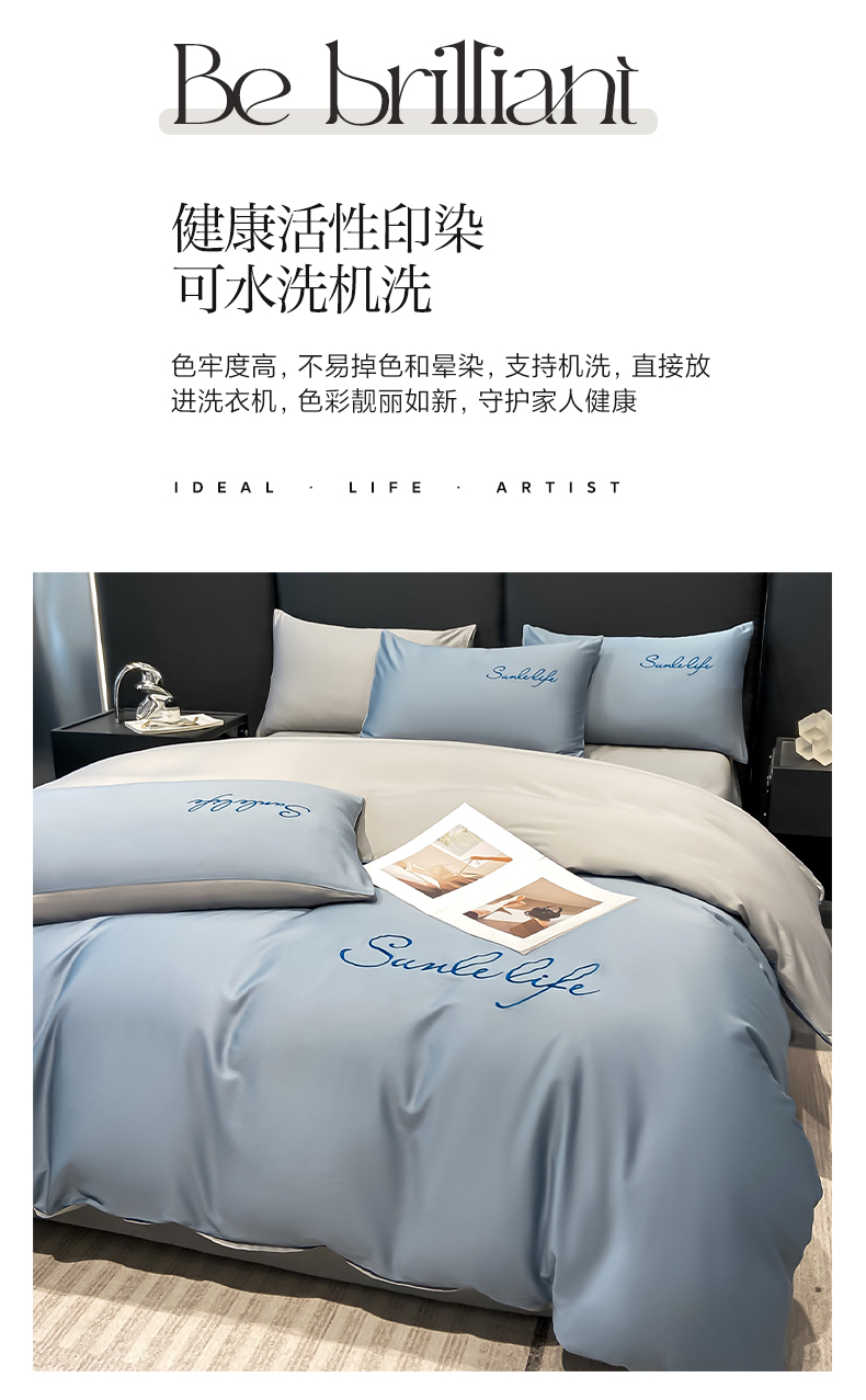 当前位置: 91家纺网 > 商品网购 > 床品套件 > 四件套 > 水洗棉四件套 > 古吉梦 2023新款S洛卡棉双拼四件套 S标-海青+浅灰