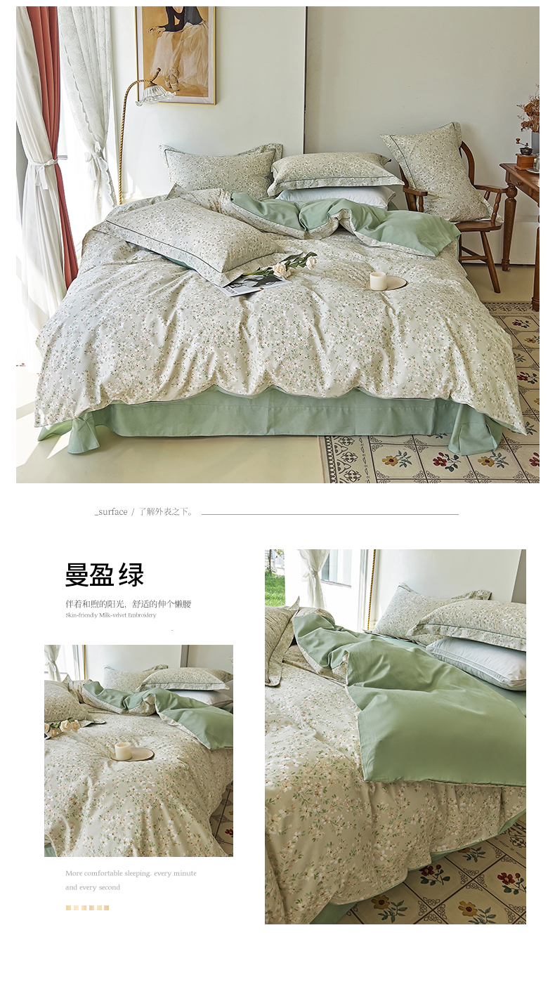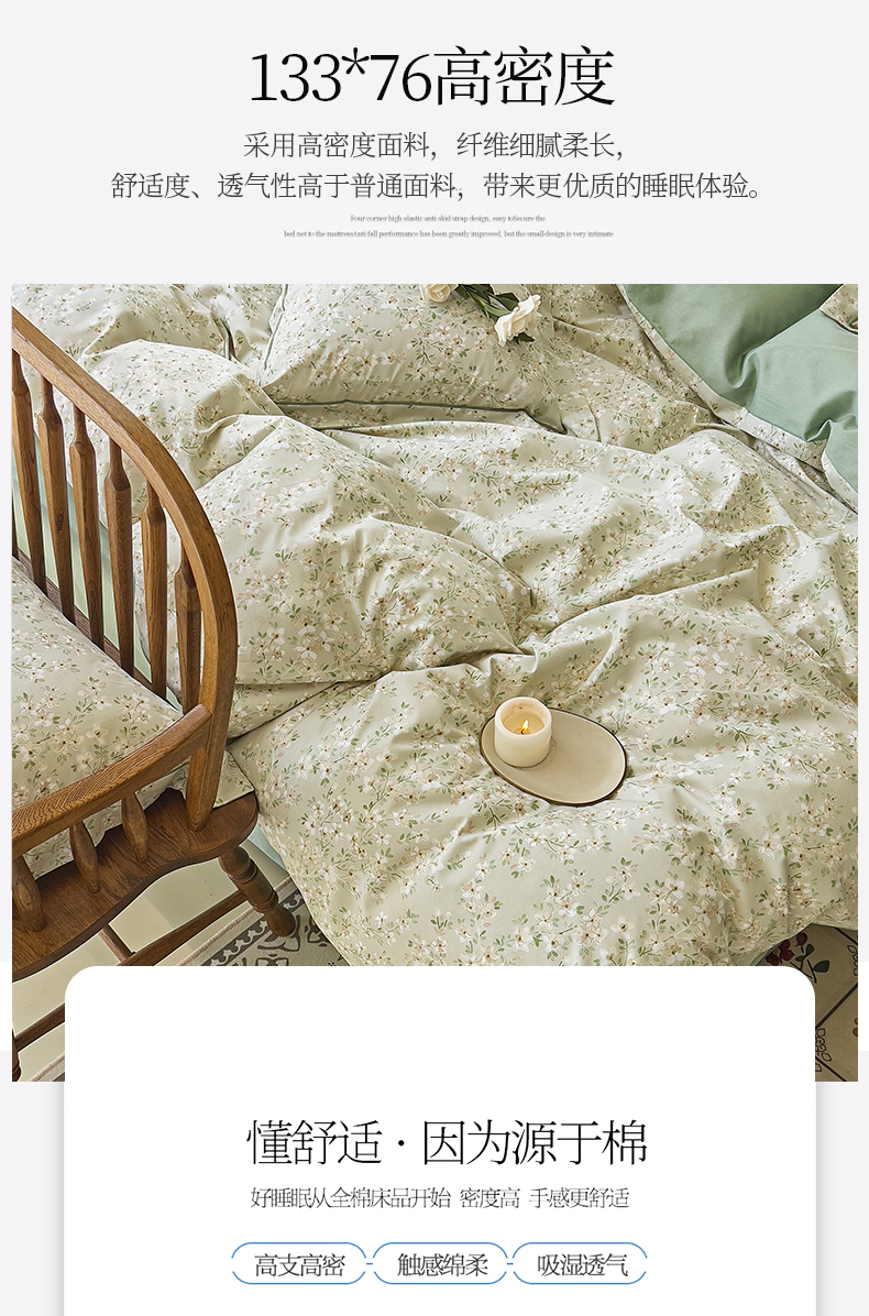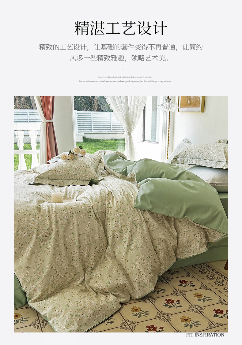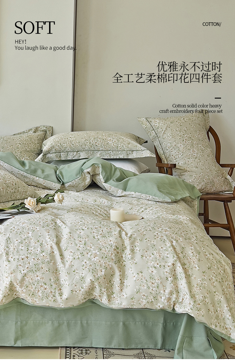 当前位置: 91家纺网 > 商品网购 > 床品套件 > 四件套 > 全棉普通四件套 > 由丽 2025新由款4月美式全棉铂金柔棉床单床笠款印花四件套被套放缩水 曼盈 绿