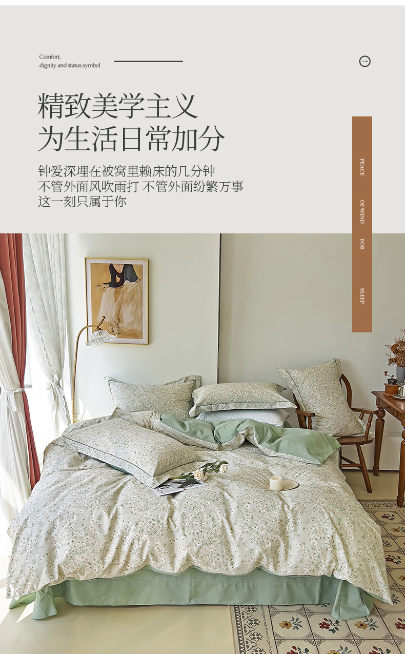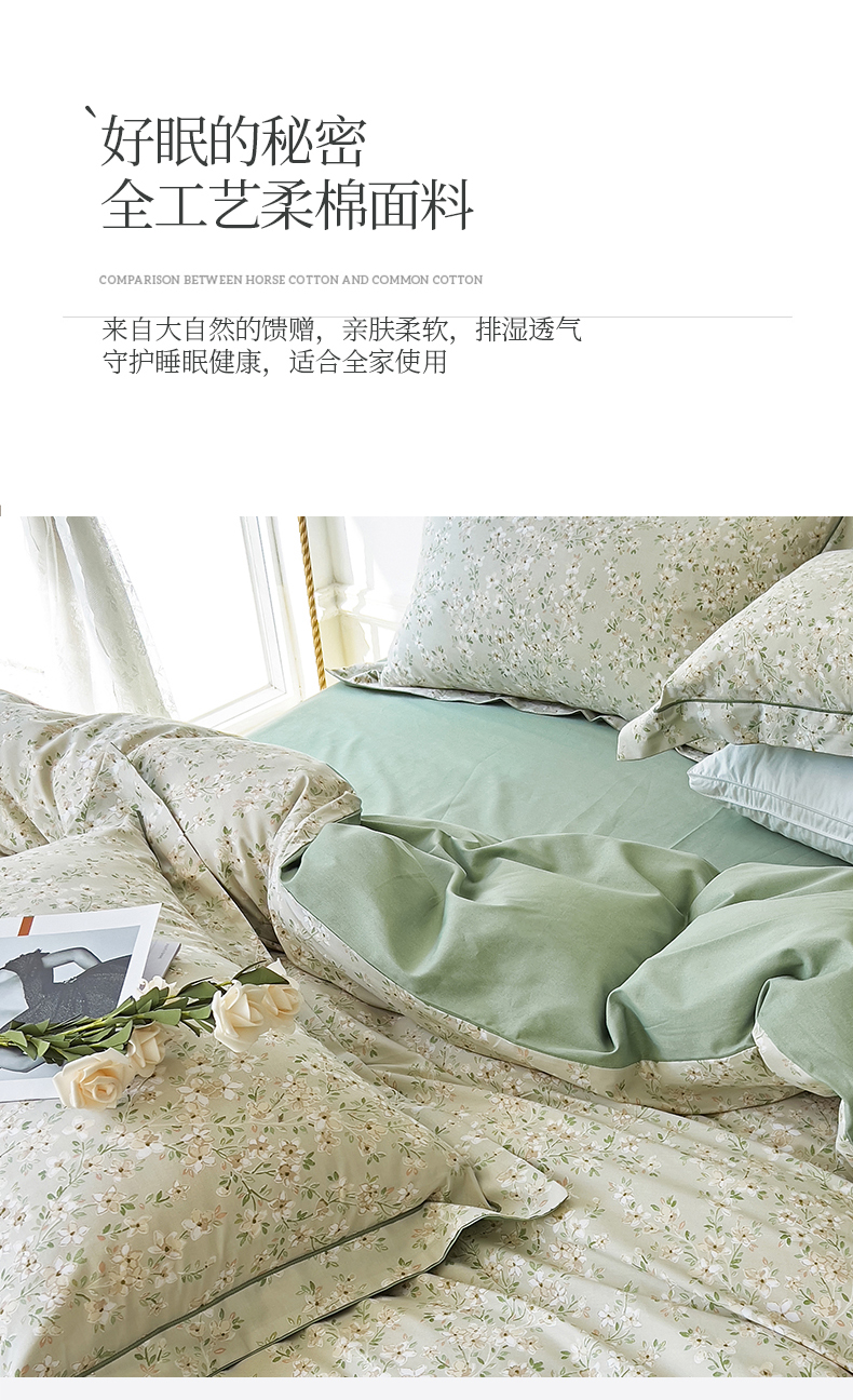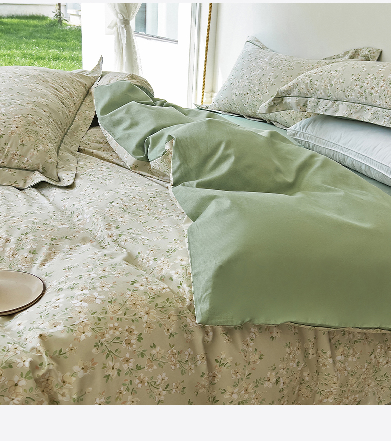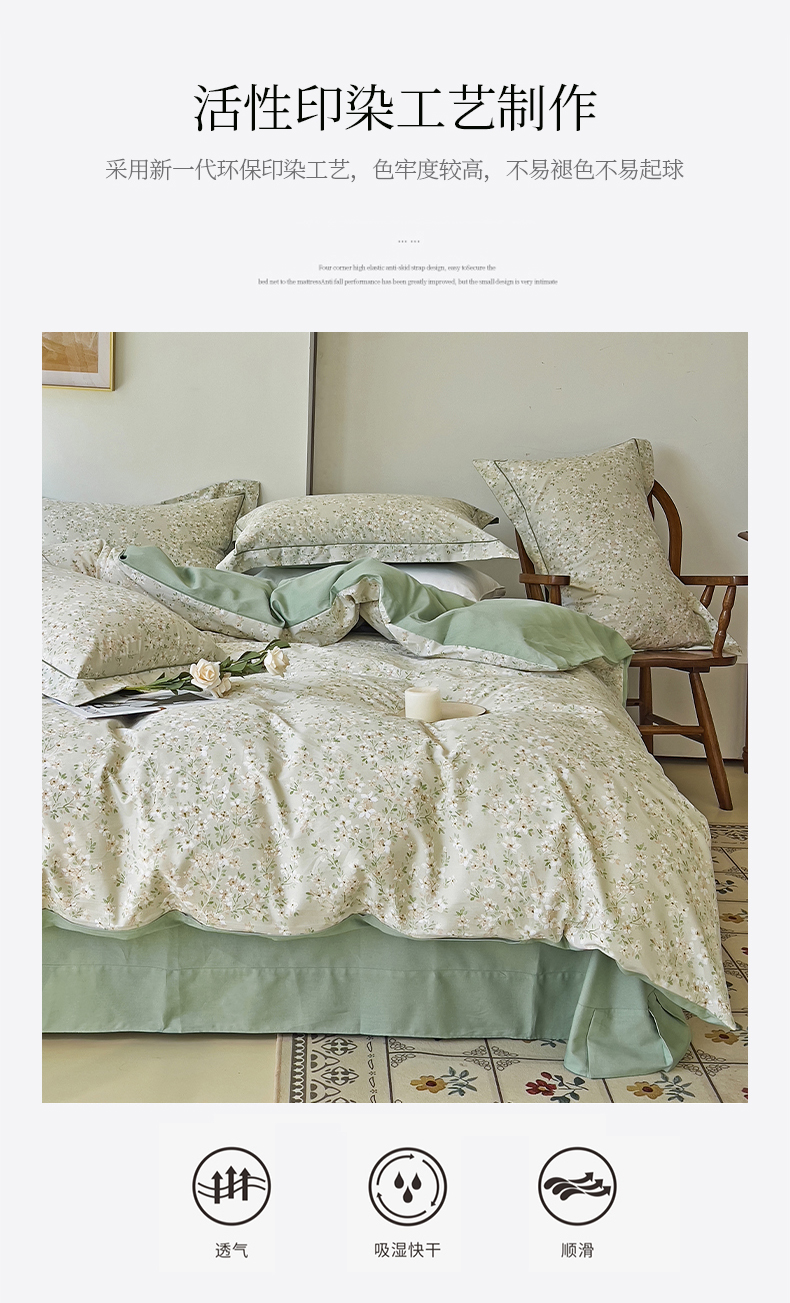 当前位置: 91家纺网 > 商品网购 > 床品套件 > 四件套 > 全棉普通四件套 > 由丽 2025新由款4月美式全棉铂金柔棉床单床笠款印花四件套被套放缩水 曼盈 绿