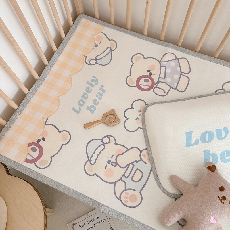 (总)橘滋 2025夏日新款高端A类原创设计婴儿童趣卡通数码印花冰丝席凉席-床席床笠,大眼熊仔,叠叠乐园,蝴蝶结兔兔,欢乐曲奇,木马小熊,太空冒险,熊猫胖达