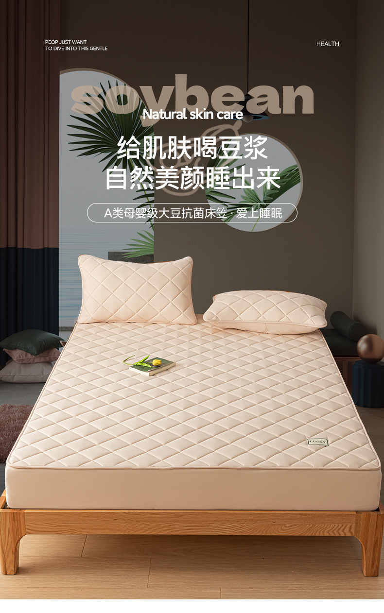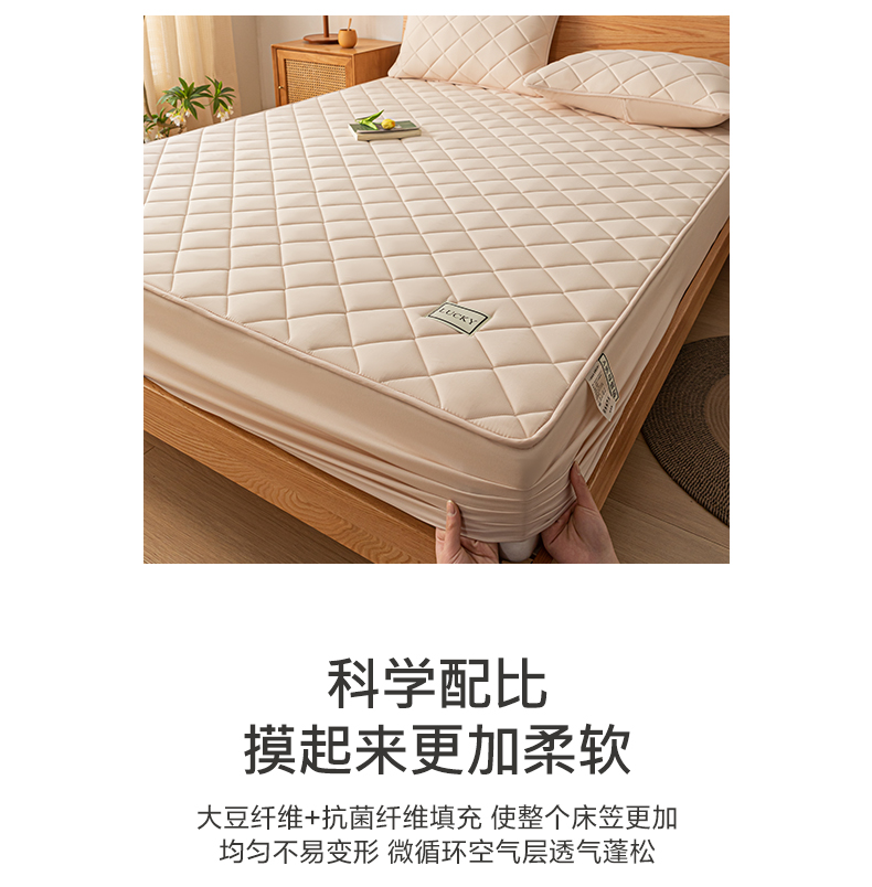 芬晴 2023新款A类母婴级大豆抗菌床笠 方格-卡其