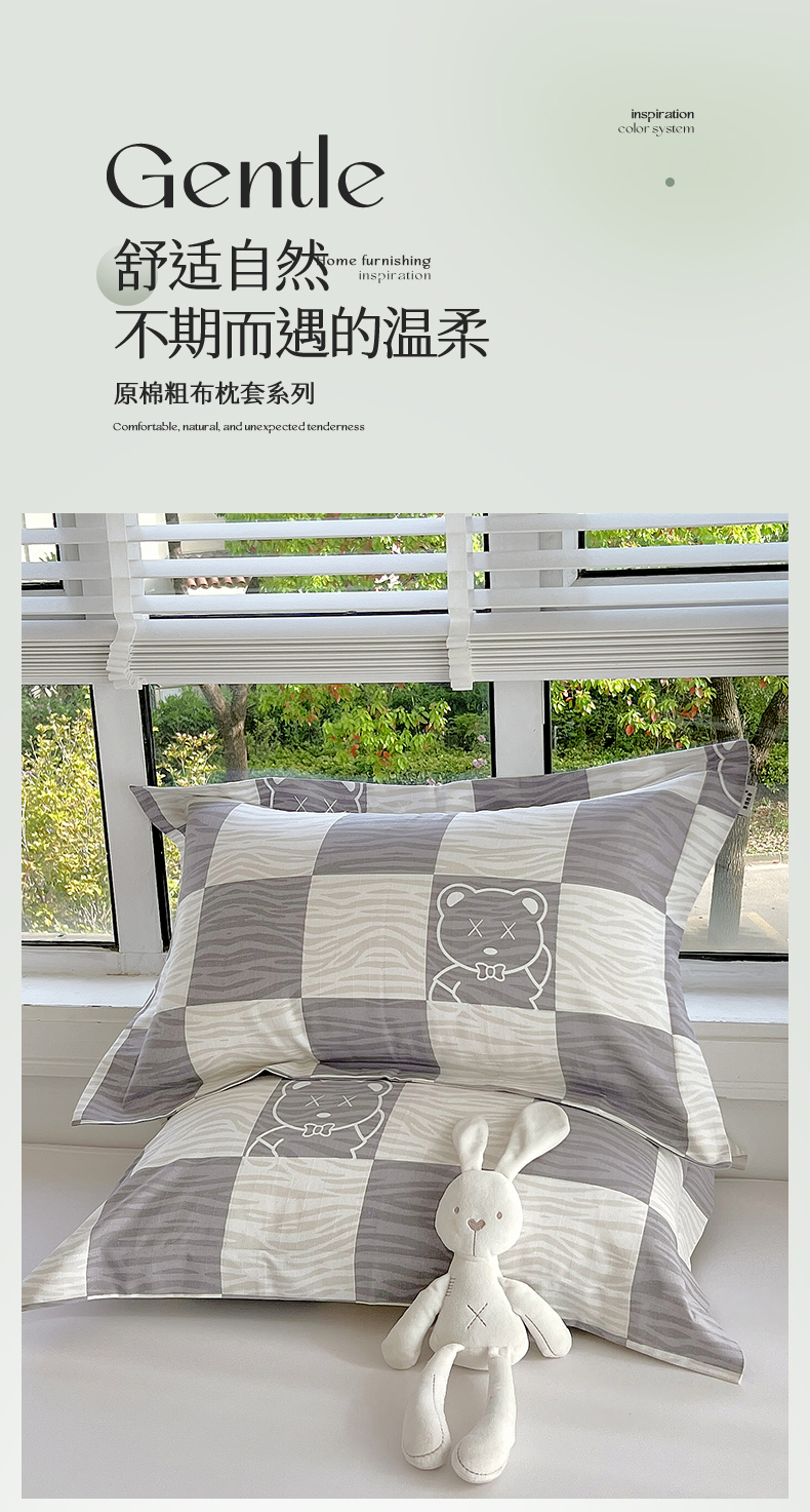 凯磊家纺 新款原棉老粗布单品系列-枕套 快乐熊