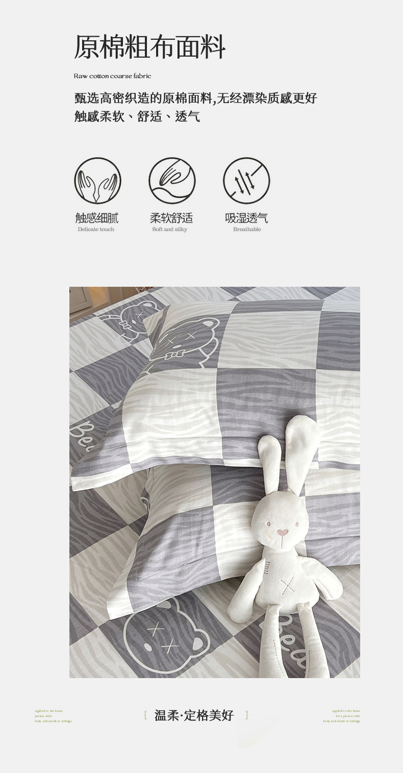商品名称:凯磊家纺 新款原棉老粗布单品系列-枕套 快乐熊